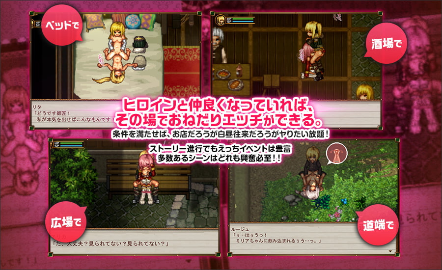 遊戲中有著探索、戰鬥、採集、生產等各種要素,內容非常豐富,即使不是H GAME也是很棒的RPG。