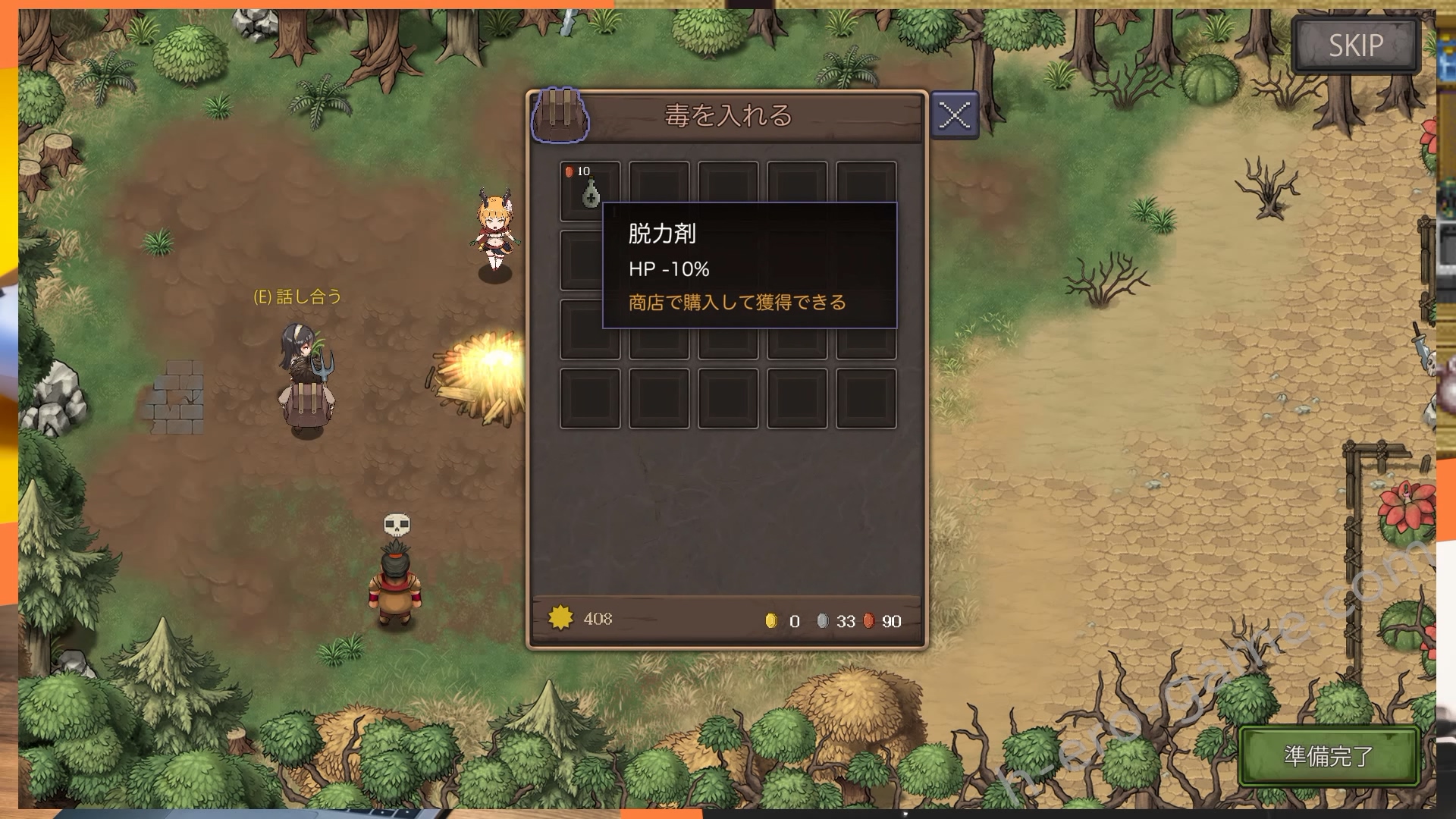 然後男主可以在這時對冒險者下毒,像是脫力劑或是瀉藥等等,這些可以去找債主買,而被下毒的冒險者在戰鬥中會減少最大生命值,至於為什麼要這麼做等等再說。