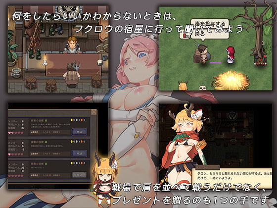每次餵媚藥都會有工口事件,餵了四次媚藥之後女角就徹底墮落並且加入男主的冒險團,然後男主就要自掏腰包跟素材讓成員升級還有強化他們的裝備。順道一題,隊伍的隊長是男角就沒有餵媚藥的步驟,會直接加入男主的冒險團。
