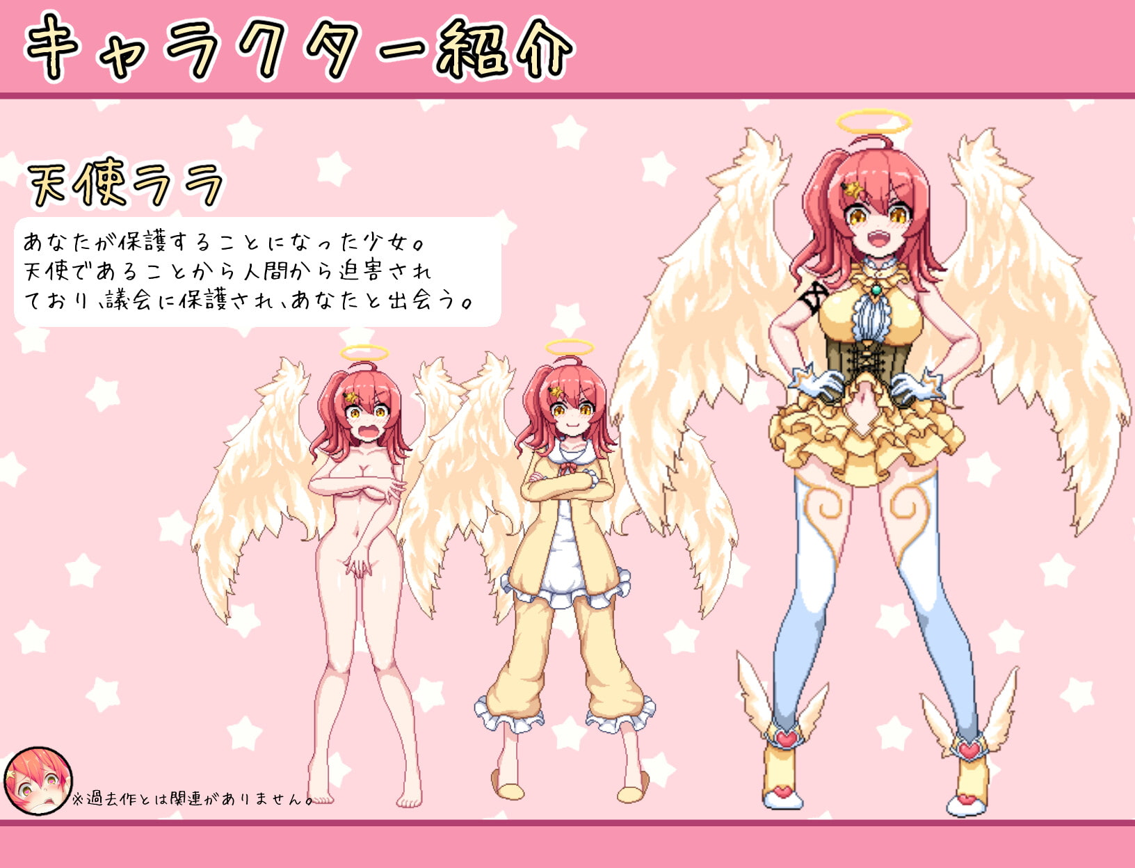 雖然這個天使是在社團前作「楽園のアルテミス」裡面登場過的角色,作者自己有說背景是在不同世界,所以沒玩過前作也沒關係,基本上只是借了角色來用而已。