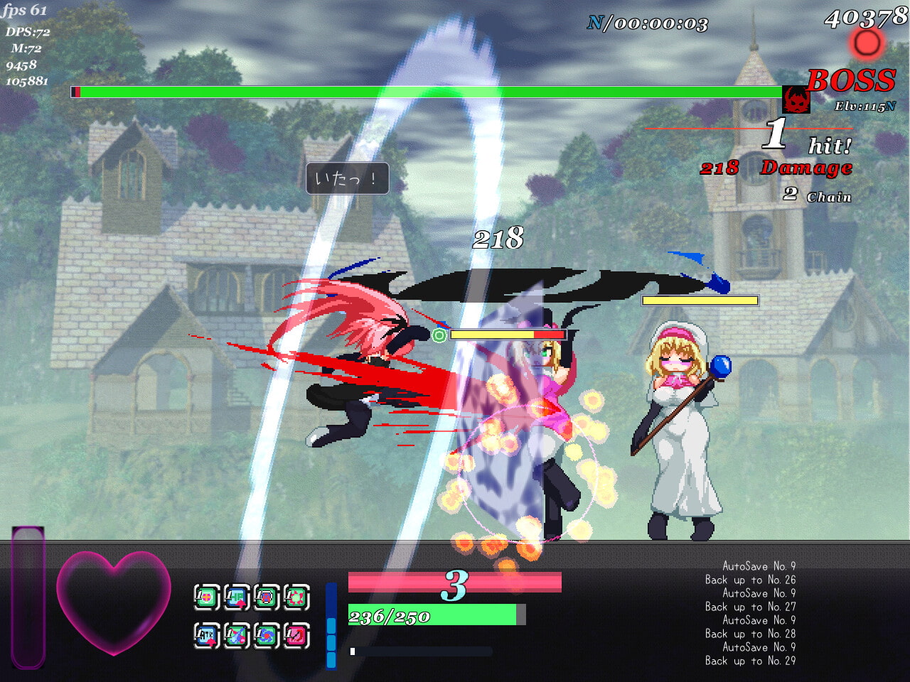 擊中敵人時的擊退效果相當爽快,透過方向加攻擊這樣簡單的方式就能觸發多種動作,因此可以享受華麗的戰鬥而且不需要複雜困難的操作。另外有簡單到地獄的四種難度,不管是想輕鬆攻略看色圖或尋求高難度動作遊戲的玩家都能夠滿足。