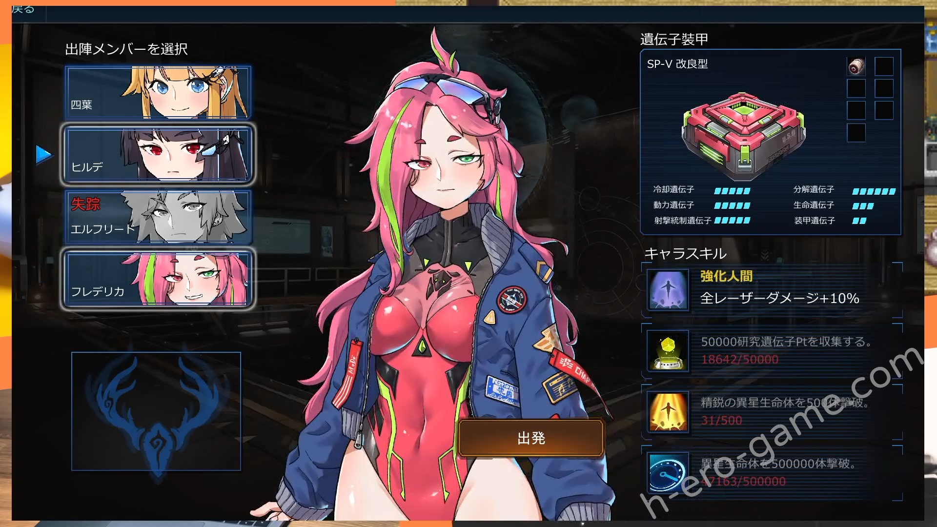 剛才所說的部份幾乎都跟吸血鬼倖存者一模一樣,重點的一些差異是角色能力的部分。本作要使用地圖上獲得的研究點數來強化角色的「遺伝子装甲」,而四個角色的裝甲各自可以強化不同的項目,像是副隊長裝甲的引力強化可以增加吸收經驗值的範圍,隊長的裝甲有增加會心的強化等等。
