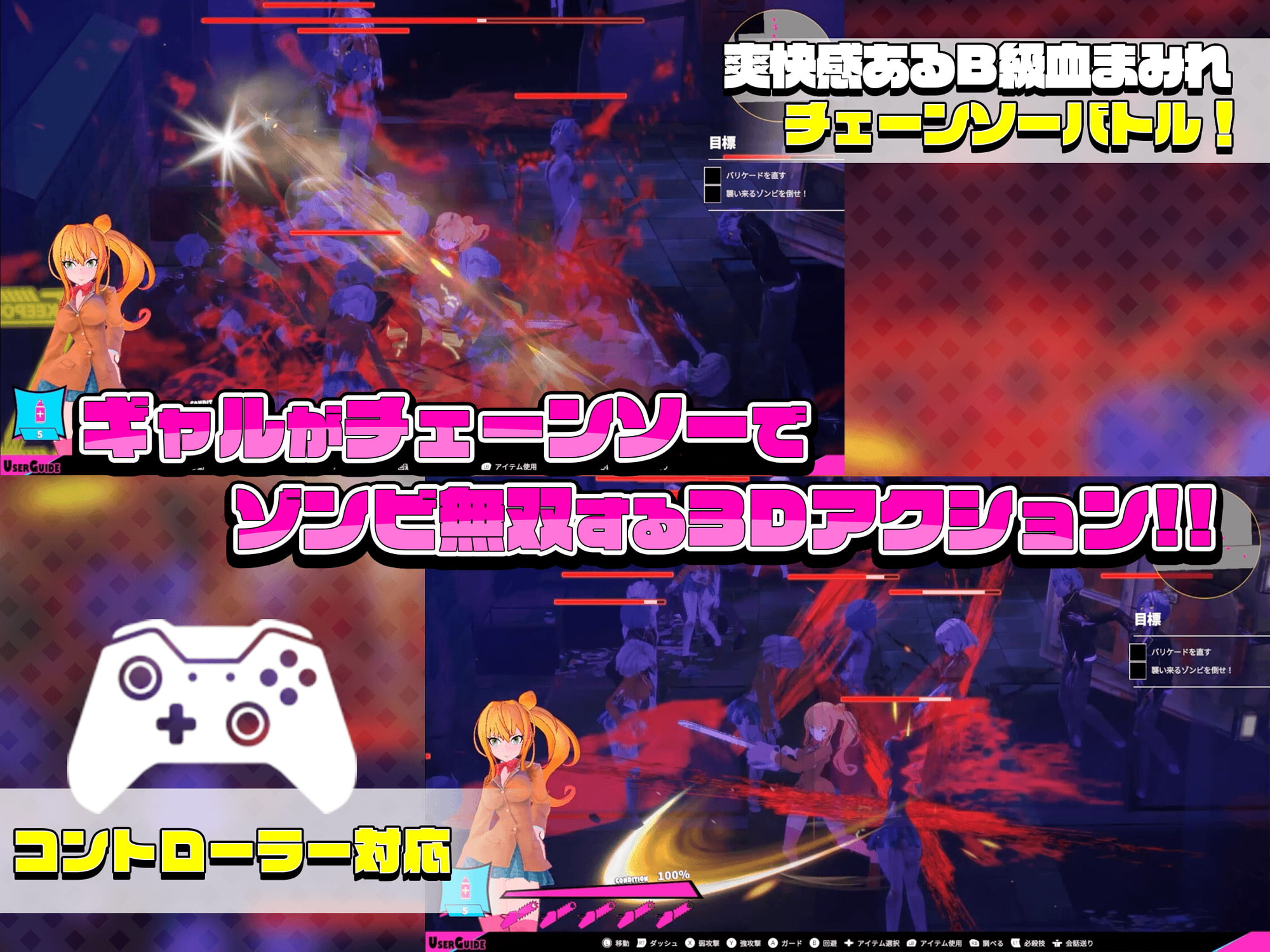 操作拿著電鋸的辣妹屠殺殭屍的3D動作遊戲,雖然說看起來是超B級的感覺,不過意外的很爽快。
