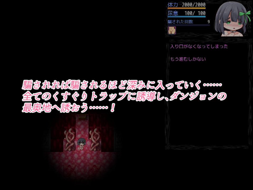 像是一開始的房間其實就只有分左右兩條岔路,左邊的通路有搔癢陷阱,右邊雖然看起來有點可疑不過是安全的。而經過探索之後,セリ會把一開始寫了正確方向的告示牌改掉,那プルちゃん就會迴避看起來有點可疑的右邊而去踩左邊有陷阱的通道。