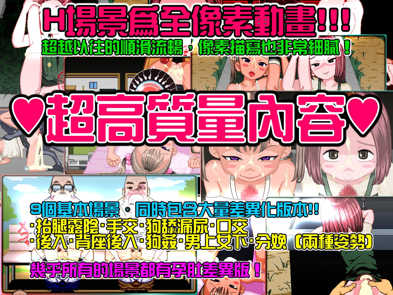 工口場景都是動態圖加上一點恩恩阿阿的音效,文字跟畫面有搭配所以演出上還不錯。進入自由模式之後可以姊妹同時play、受孕與收集服裝,而衣裝跟懷孕與否都有在工口場景做出差分。