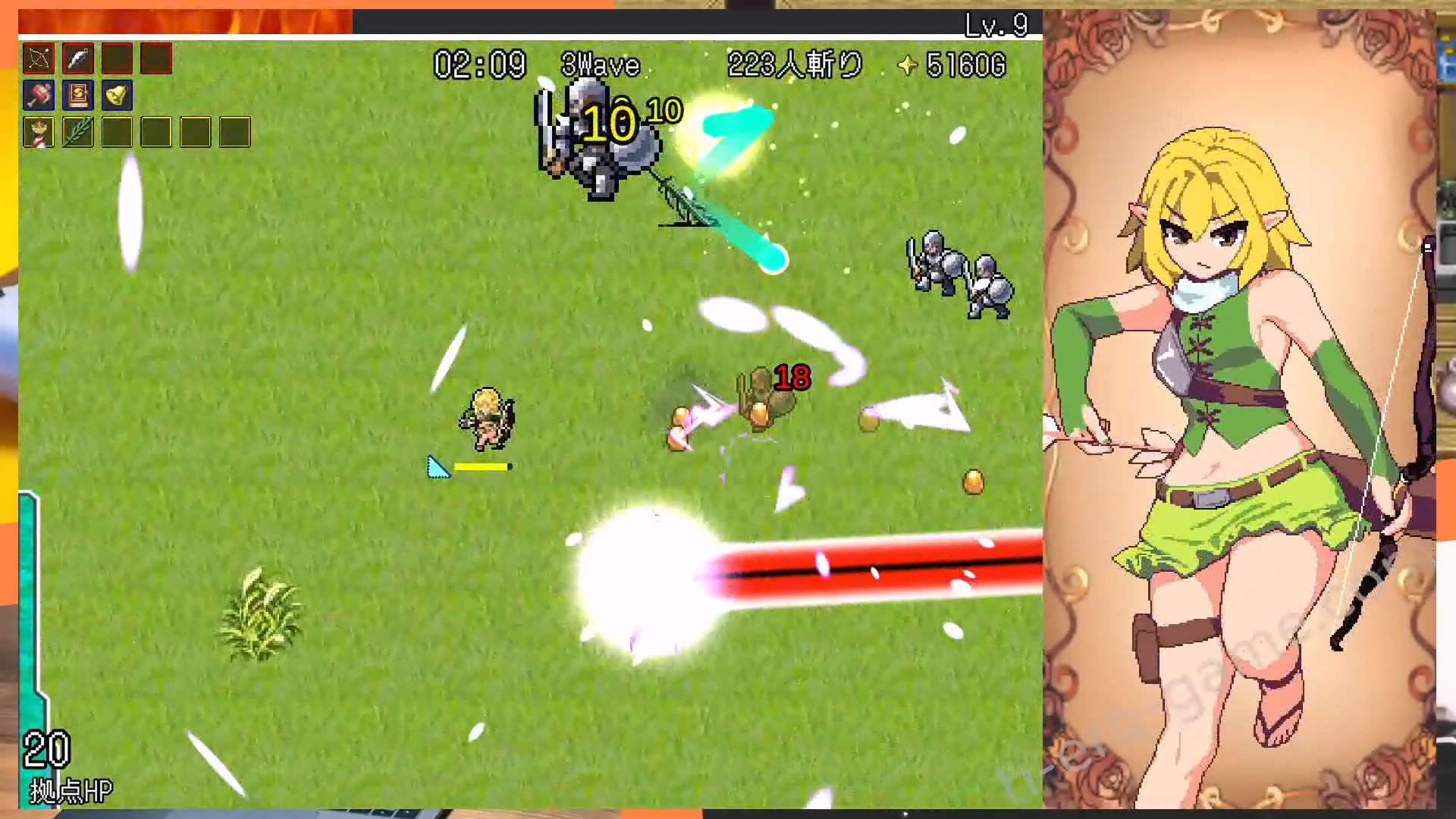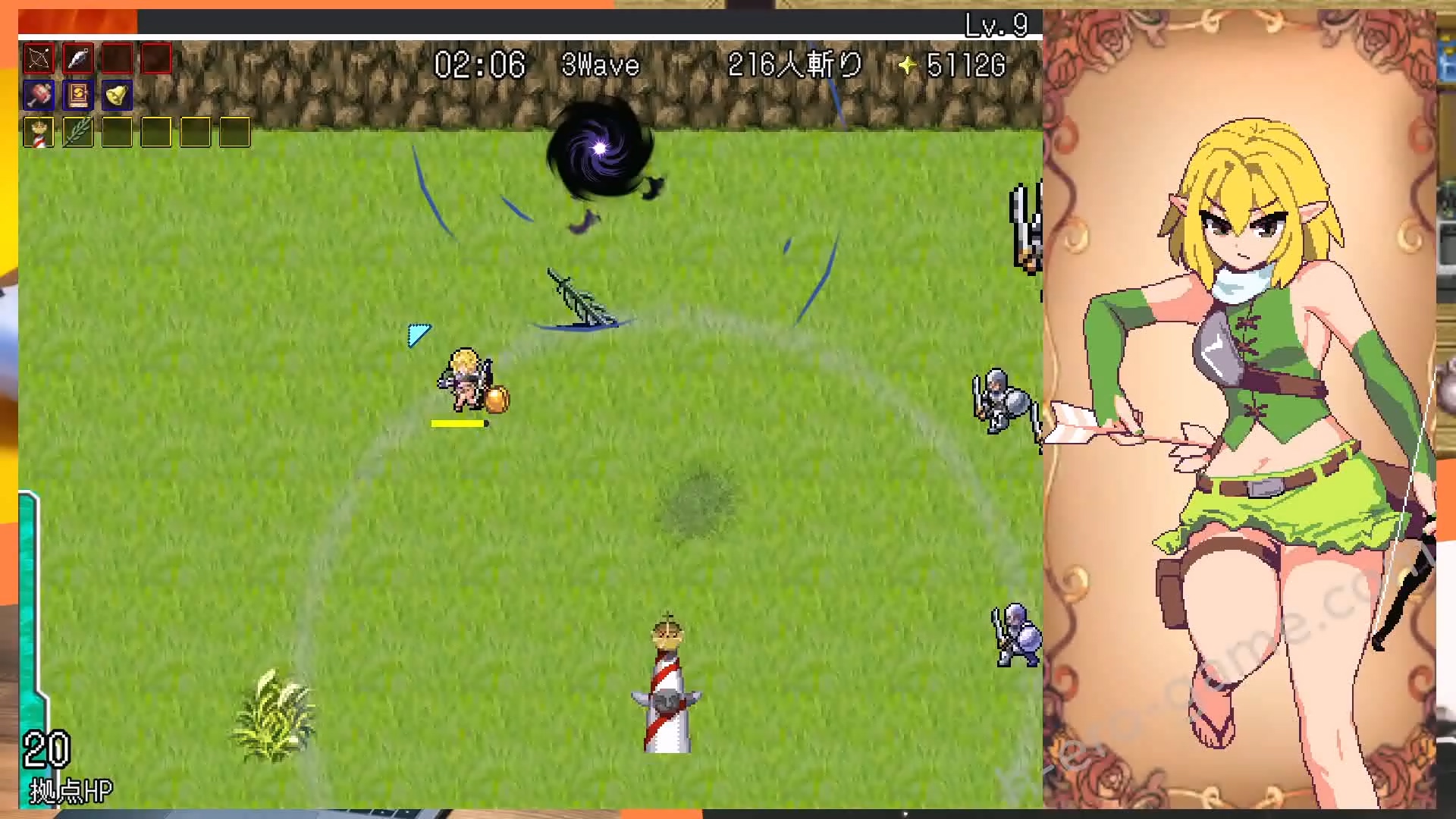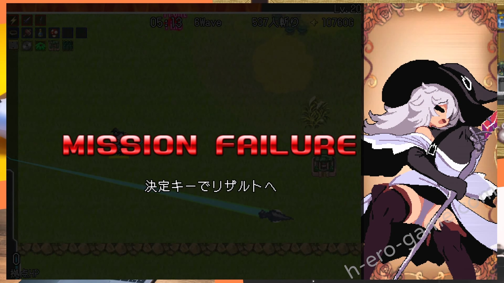 本作的敵人是由畫面右方不斷出現,雖然有些人看到女角就會去追,不過也有些是直線往女主所要守護的據點移動。只要被敵人走到據點就會扣據點的HP,據點的HP扣完或是被頭目走到營地也算戰敗。