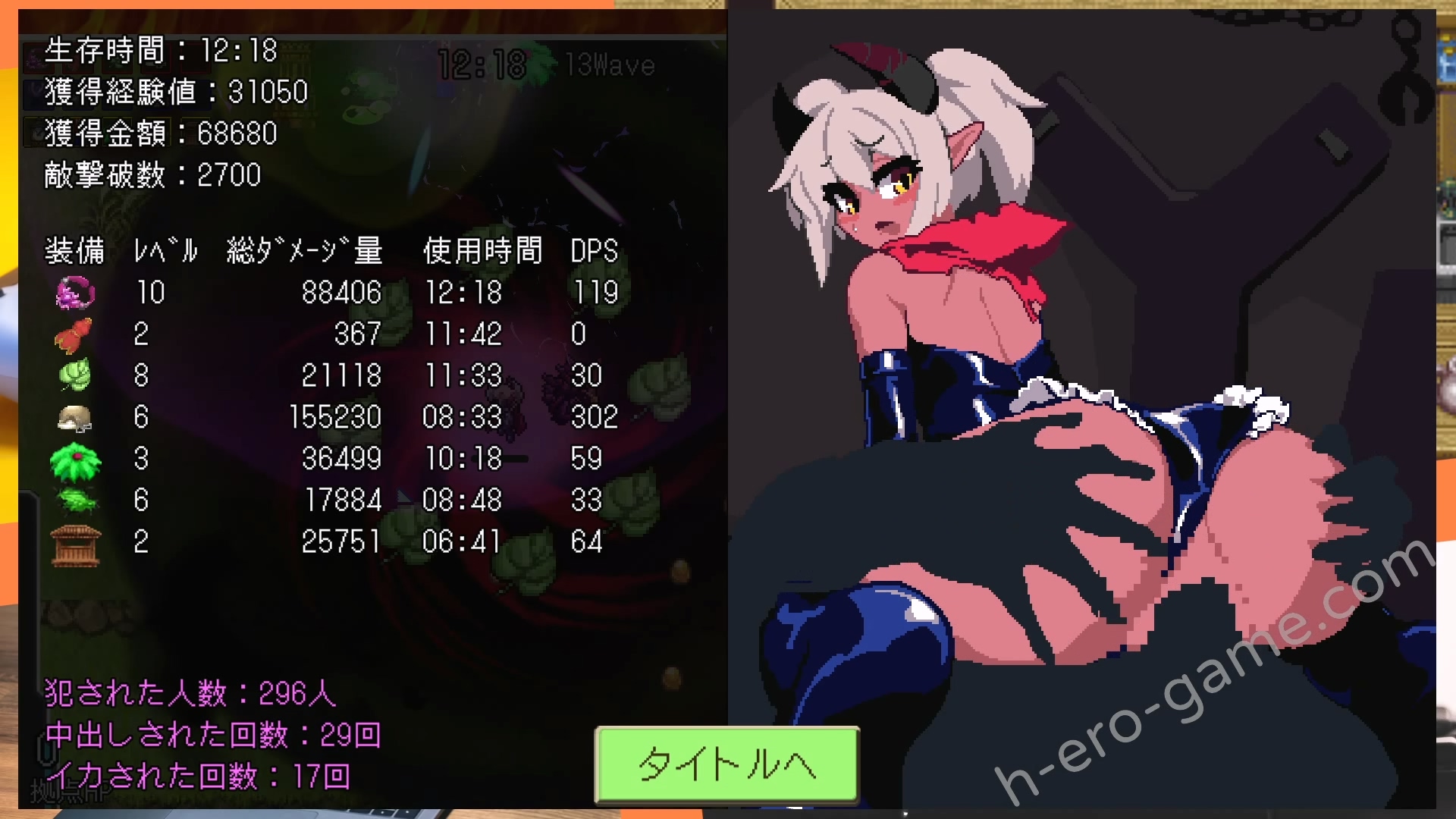 工口部分都是戰敗場景,五個女主一人各一個戰敗時的像素圖動畫,剛才說的滅國後的下場也有一張CG。要是喜歡點陣圖風格的話,H的部分非常精美,但可惜的數量很少。