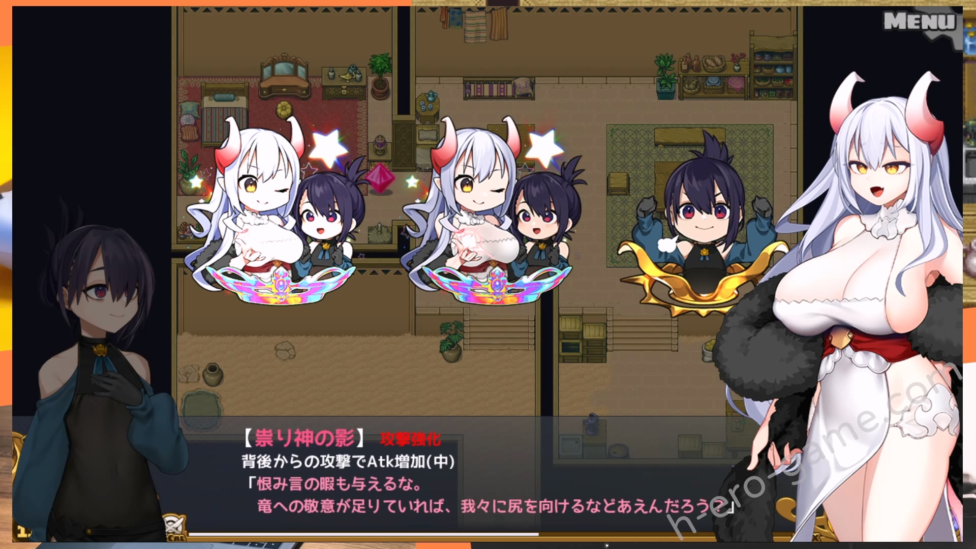 在與公主H時的情境上是氣氛非常濃烈的純愛系姊姊x正太,演出方面是強調大量中出鏡頭的動畫。除了與公主的H之外,與魔物娘的敗北H或是打倒頭目魔物娘的H也都是動畫。