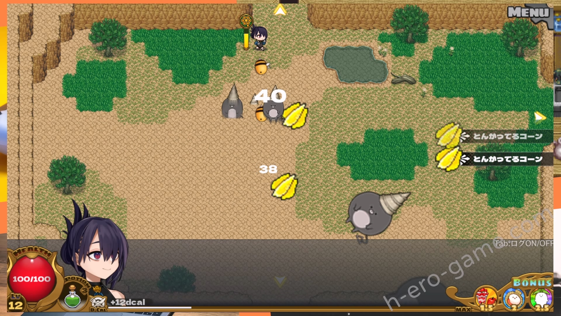 本作的目的就是要幫公主備孕,男主從兩人所住的據點前往有怪物出沒的關卡,打倒怪物獲得各種食材。獲得每種食材都會得到對應的卡路里,累積卡路里後提高等級。