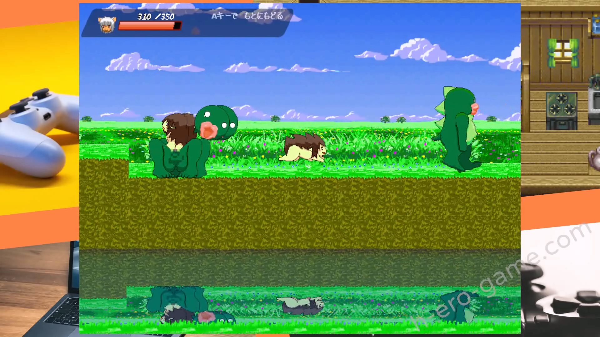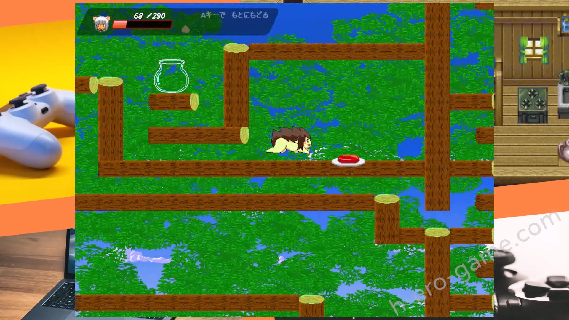 遊戲部分主要是橫向卷軸的動作遊戲,主要是透過平台跳躍、閃躲怪物推進進度並且收集提高體力上限的桃子。