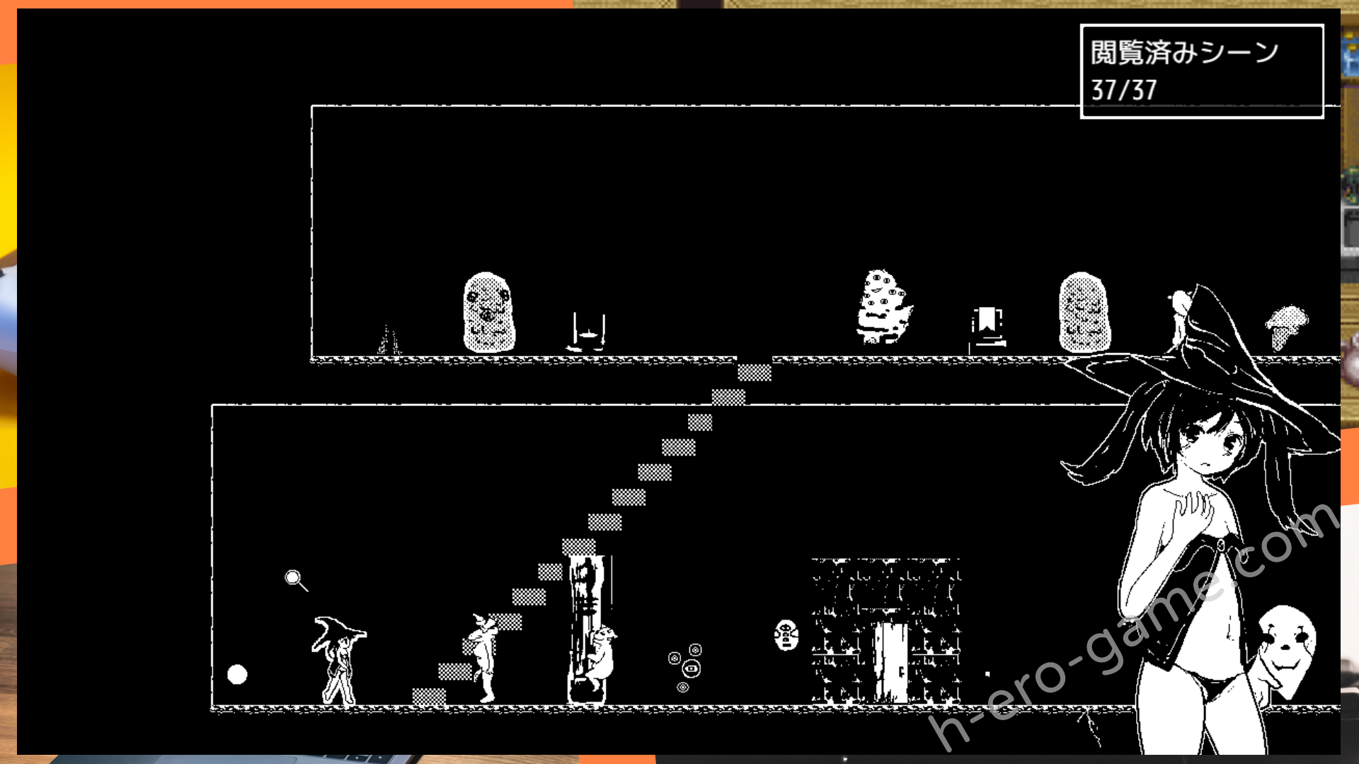 後來想說會不會是「巨大仮面」的半吞跟丸吞這兩個階段都算一個H場景,如果是這樣的話那就剛好是37個了,於是我開了一個新的存檔測試。