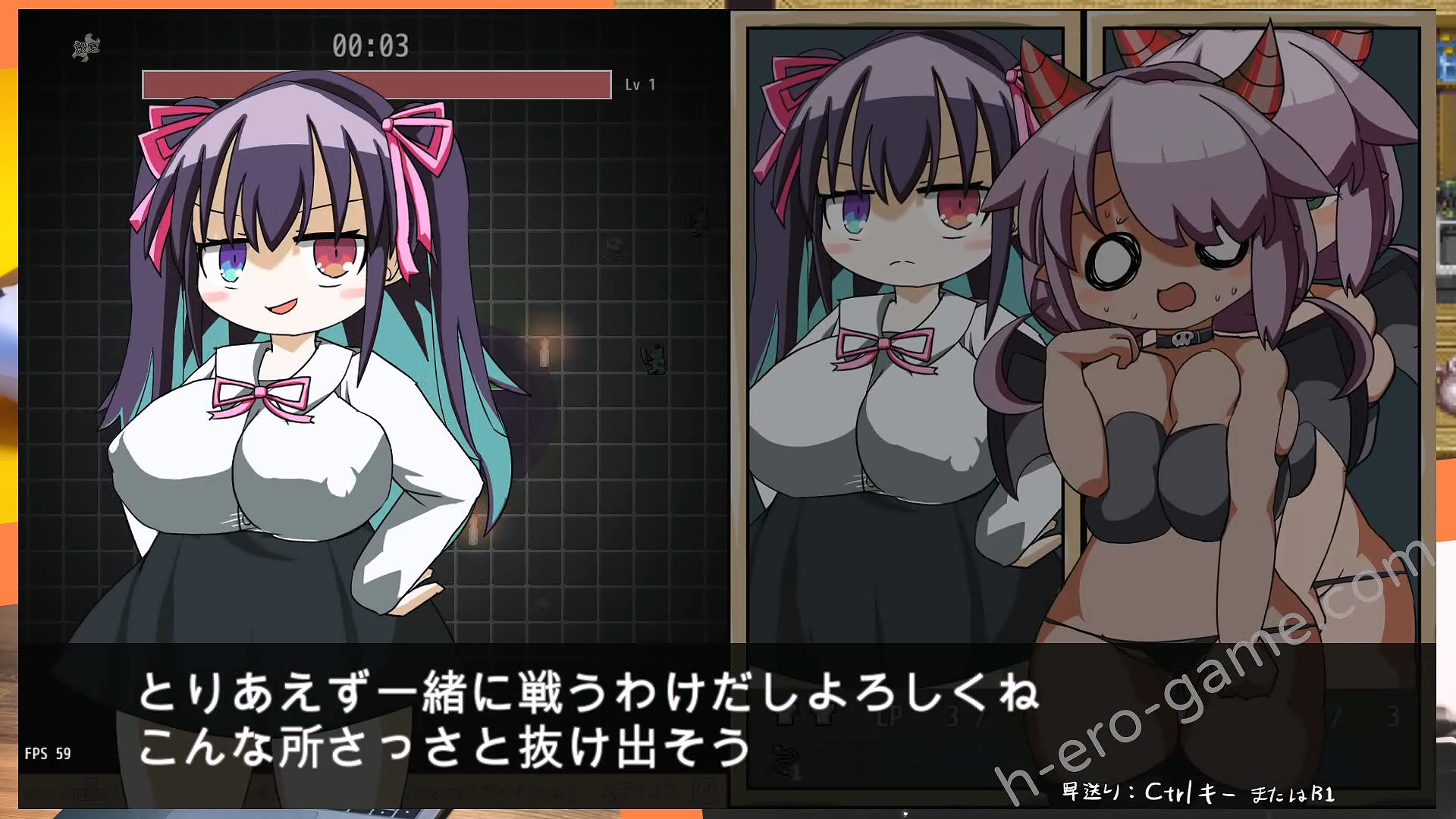 輕鬆搞笑系的劇情加上獨特畫風的蘿莉巨乳,其實這種風格的搭配還蠻有特色的。只是在戰鬥中畫面的左邊被兩個人物立繪佔據,其實遊戲畫面有點小。