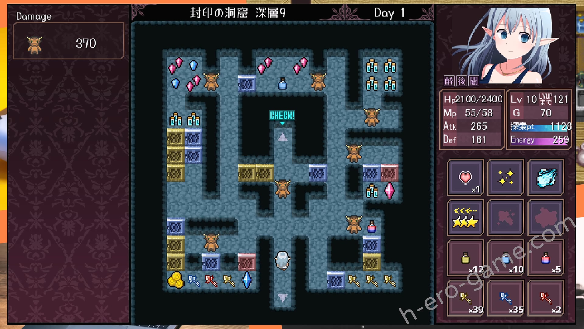 另外還有一項相當有特色的系統,傳統魔塔遊戲之中幾乎都擁有著無限的時間,但是本作是要在三天內攻略,有時限也就代表會有時間流逝,因此有了魔力暈眩(魔力酔い)系統。