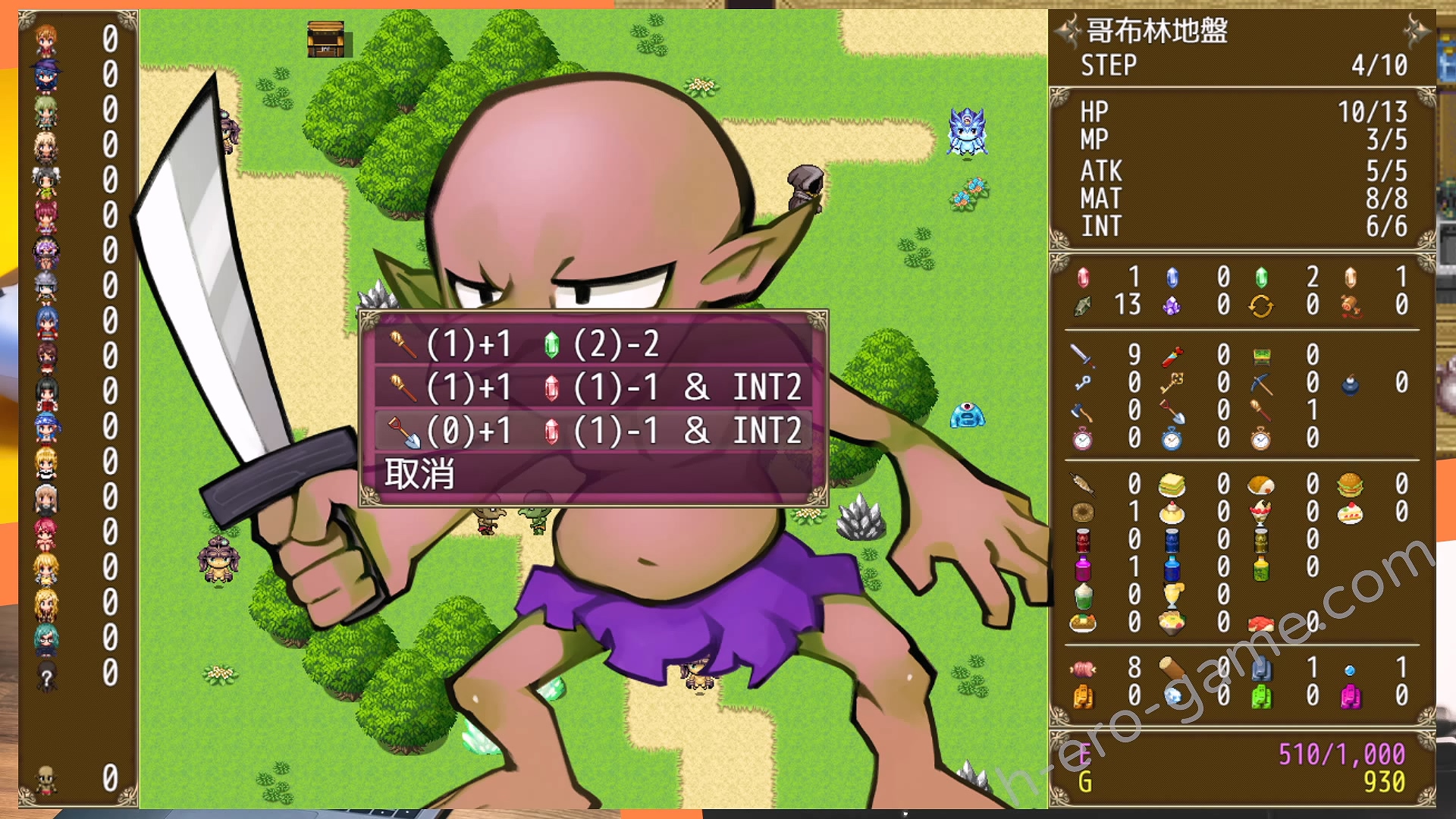 再之後的「外」(我也不知道是什麼外,他就寫個外而已)就會開始出現女冒險者跟障礙物了,這區域是由大約十張地圖之中隨機抽,多走幾次的話就會發現有地圖是之前走過的。
