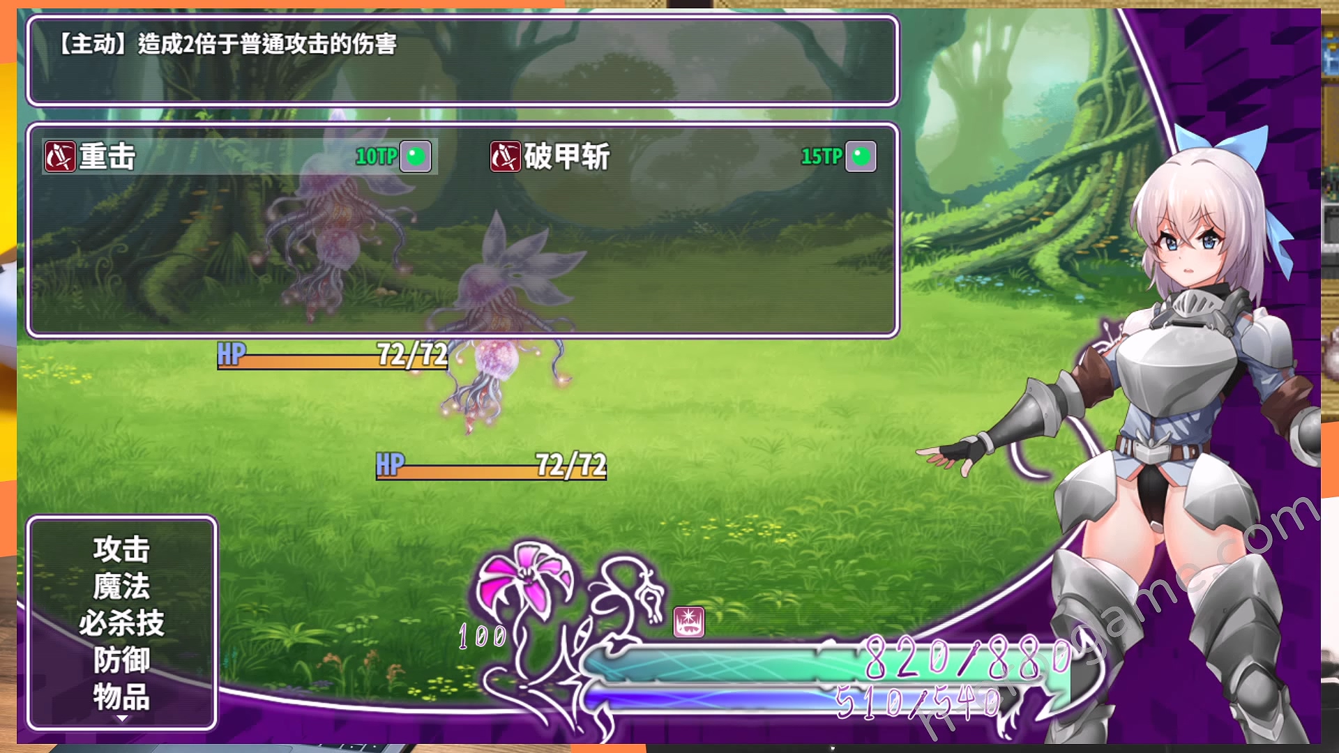 遊戲部分是傳統式的回合制戰鬥RPG,戰鬥部分都只有女主一個人對上一到三名敵人,從頭到尾都沒有隊友。