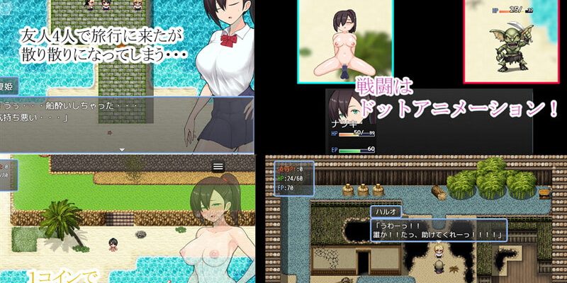 遊戲的部分是回合制戰鬥的RPG,在戰鬥時怪物會使用物理攻擊或是工口攻擊,普通攻擊扣HP,工口攻擊加EP。女主的HP被打完就GameOver,EP到一百的話怪就滿足的走掉了,而且還沒有什麼懲罰。