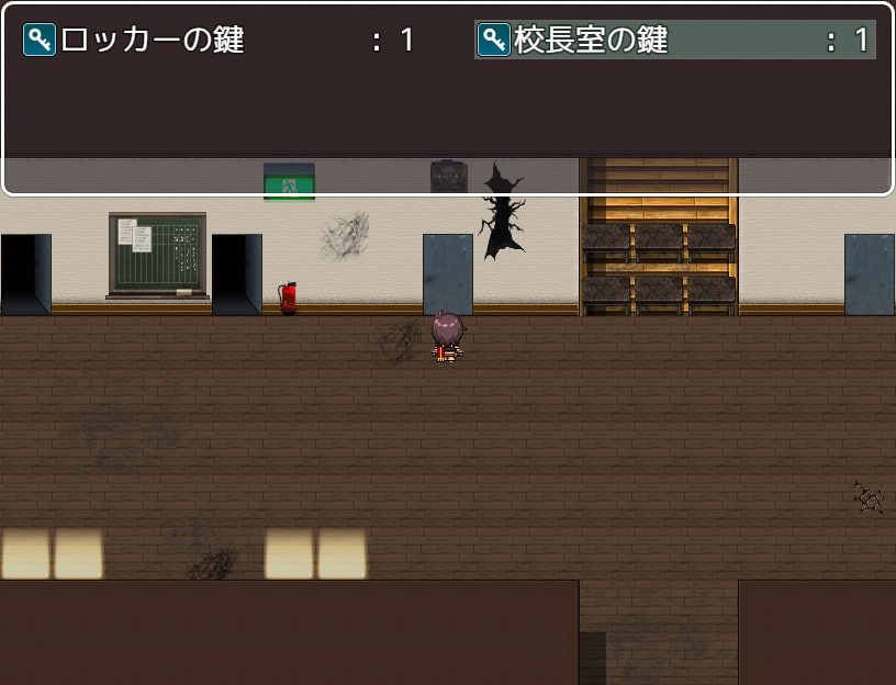 舉例來說,女主一開始是在一樓的教室裡醒來,這時這間教室之中沒有可以取得或互動的物品。而在經過校長室的襲擊事件之後,要在教室講台的地上撿起一張「原本不在那邊」的影印紙。