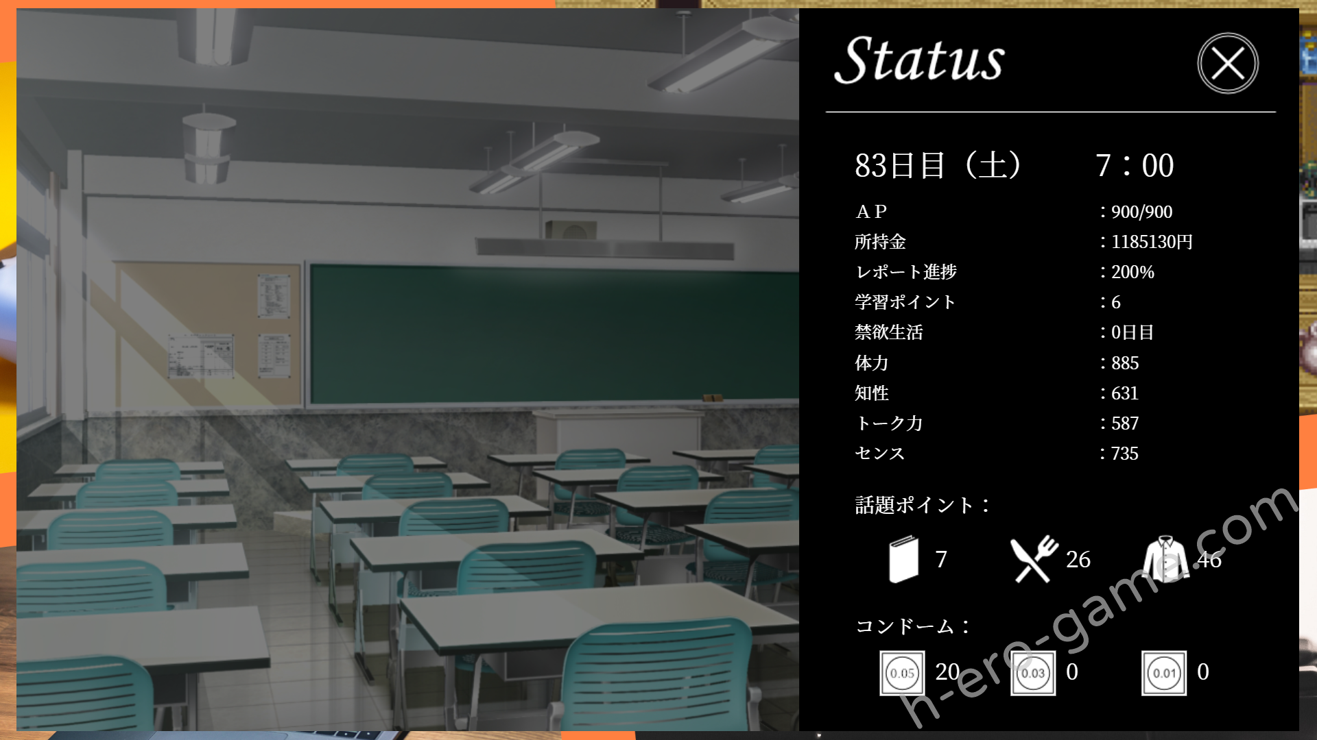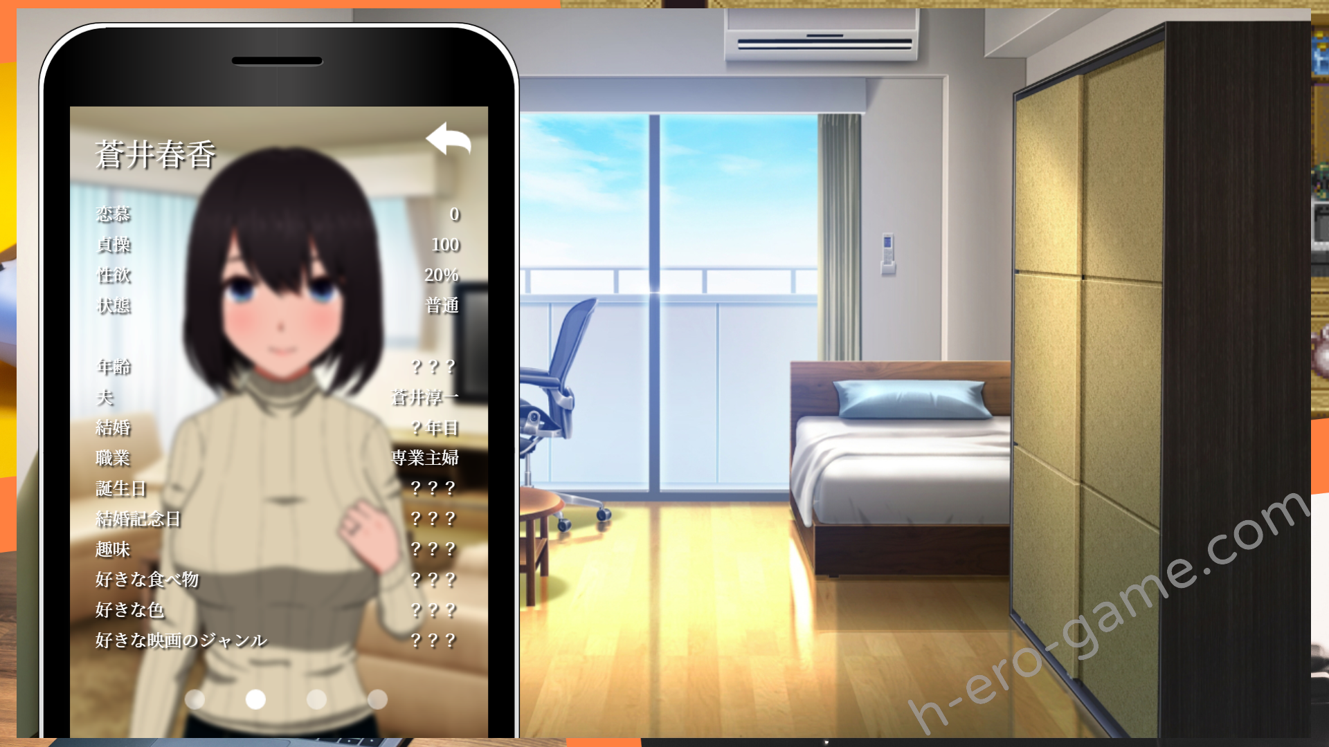 另外在完成所有條件時,解鎖女主的生理週期資訊,可以查看懷孕機率以及無套H,但只有綠字的「0%懷孕機率」時可以無套。