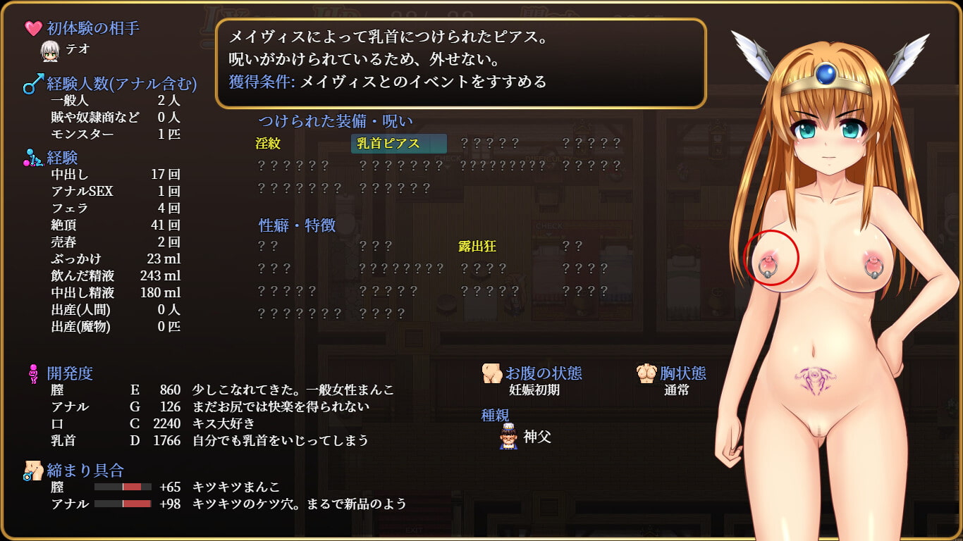 目前(我玩的時候是2021/07/31)一些瑣碎的Bug不少,大多都像是某個場景中自動開了鼻環的差分,在高級娼館H會解除瓜肚狀態,在托兒所時蘿莉修女會說不認得白毛正太的種等等。不過修復也很快,這篇文章發布的時候大概又再更新了六、七個版本。再來就是認真玩的話會覺得過程有點短,每個地城都是三層樓,總共三個地城就結束了。