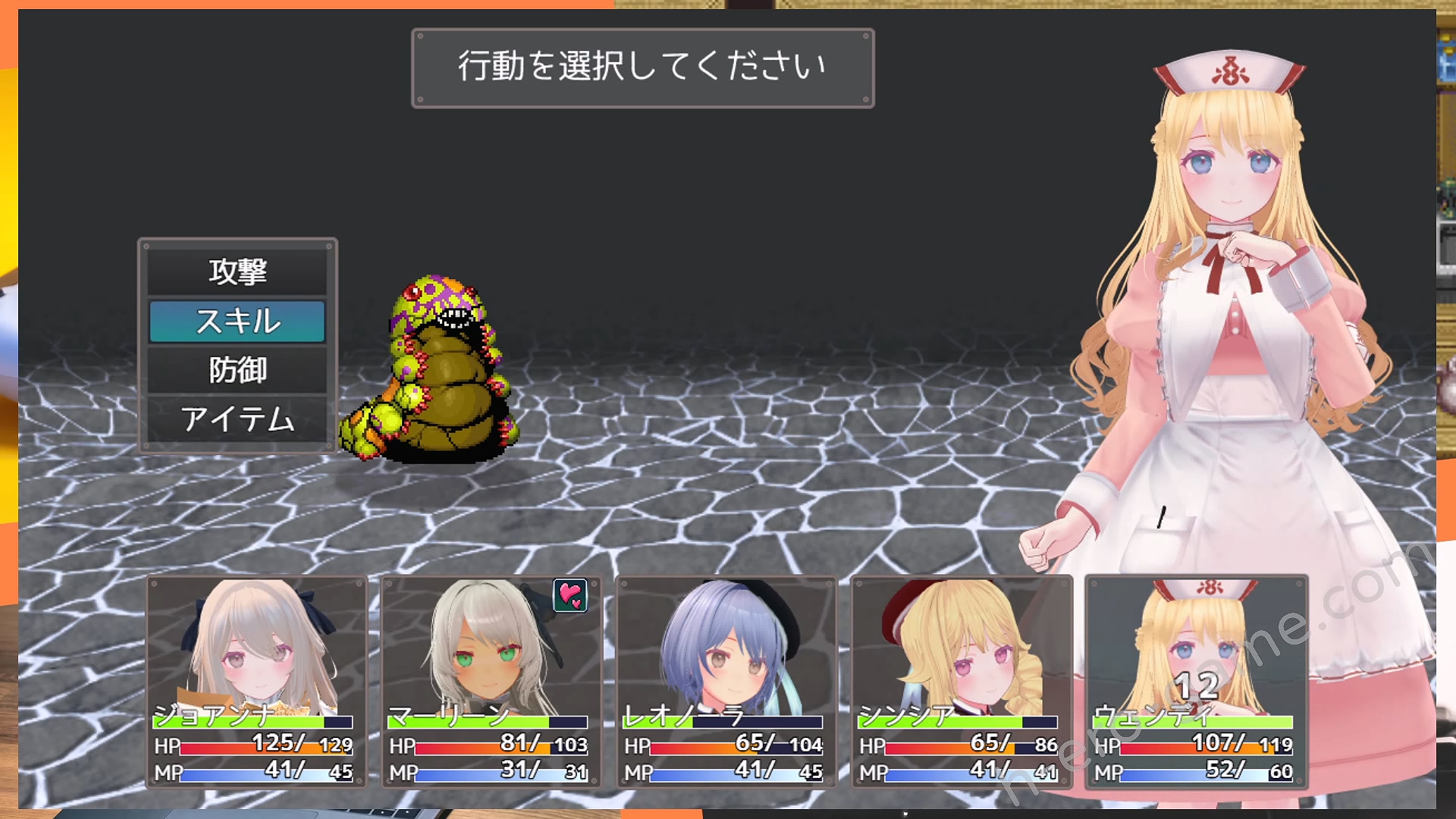 每攻略一層地城之後都從公會招募一個隊友,直到在公會登陸的女冒險者都加入。角色的類型大致上可以分成前衛、中衛、後衛,受到攻擊的機率是由前往後遞減。