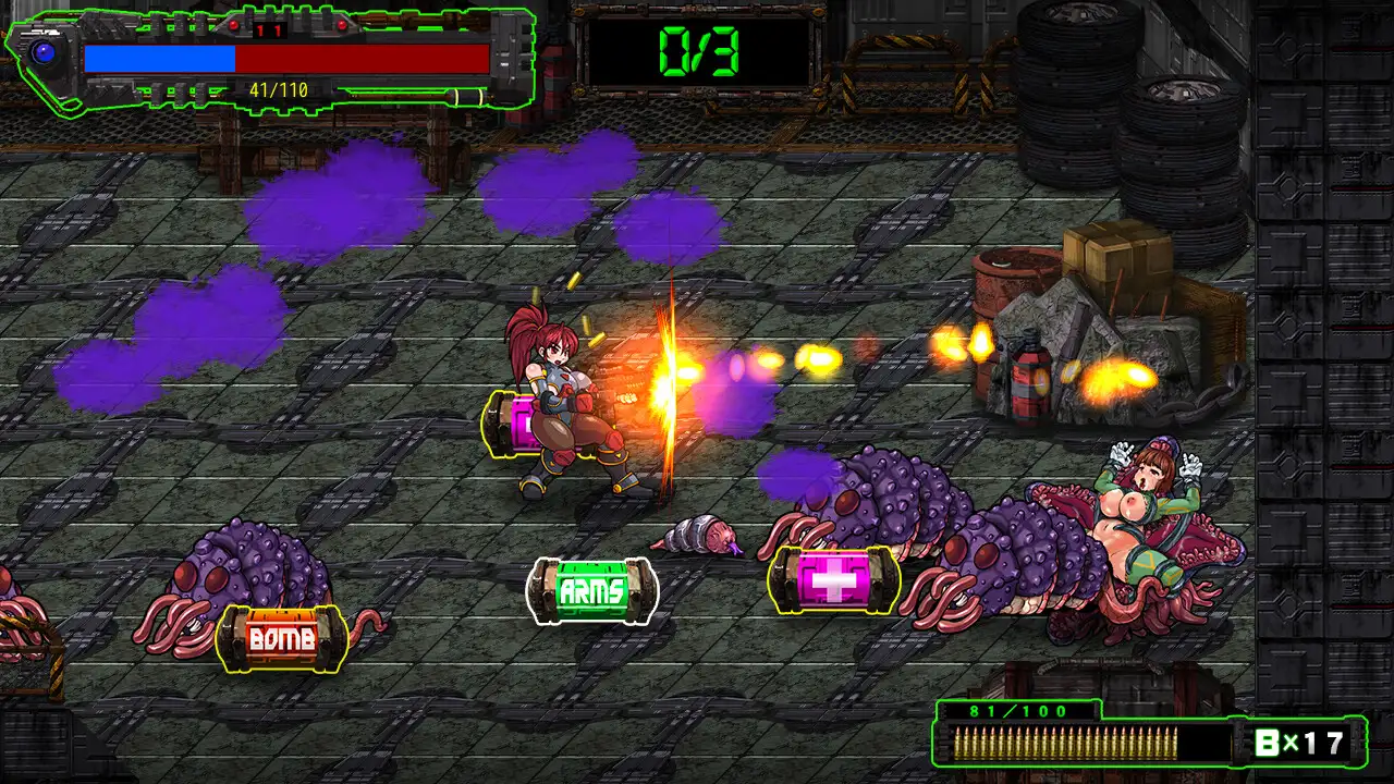 游戲是橫向捲軸的動作遊戲,遊戲的流程很容易理解,不同的關卡會有不同的目標,比如打倒所有異形、拯救俘虜,生存一段時間、打倒頭目等等。