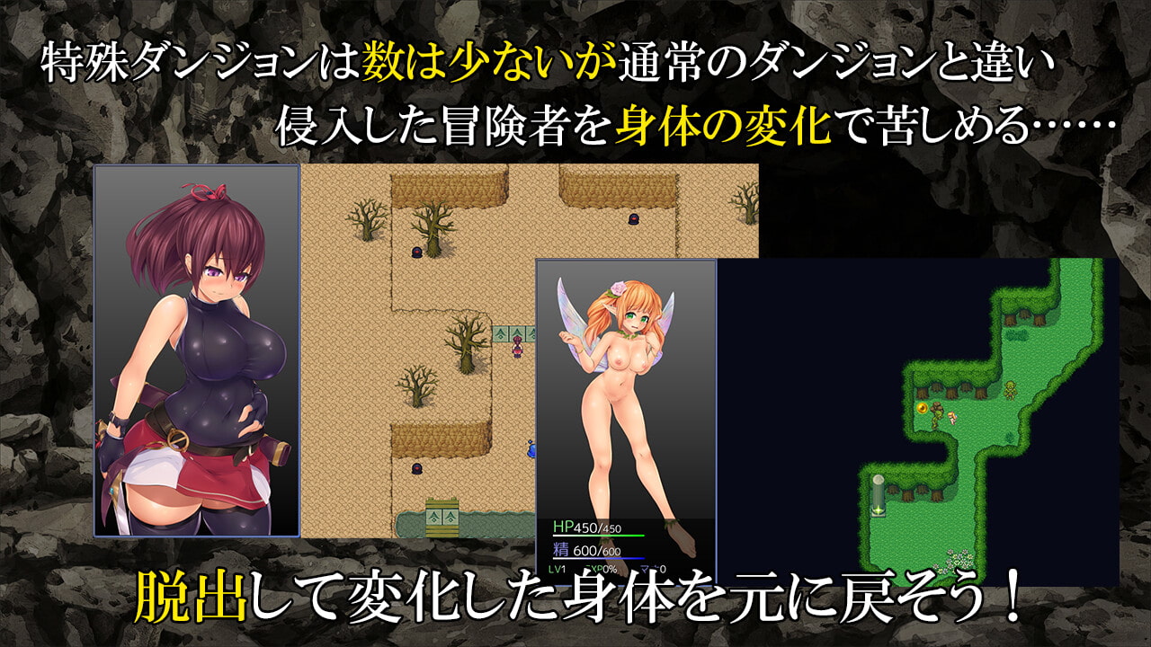 工口部分是異種為主的敗北以及戰鬥時的工口攻擊,不過一般來說只算是「配菜」的工口攻擊在這款卻是「主菜」,除了瓜肚、扶他、淫紋、催眠、妖精化等豐富的特殊狀態之外,戰鬥的立繪也會隨著狀態有著各種差分。另外,姑且算是有點百合要素。不過大概是涵蓋太多性癖,所以各自的演出都比較薄弱,如果是想要徹底的瓜肚、扶他、這樣那樣的話會比較失望。