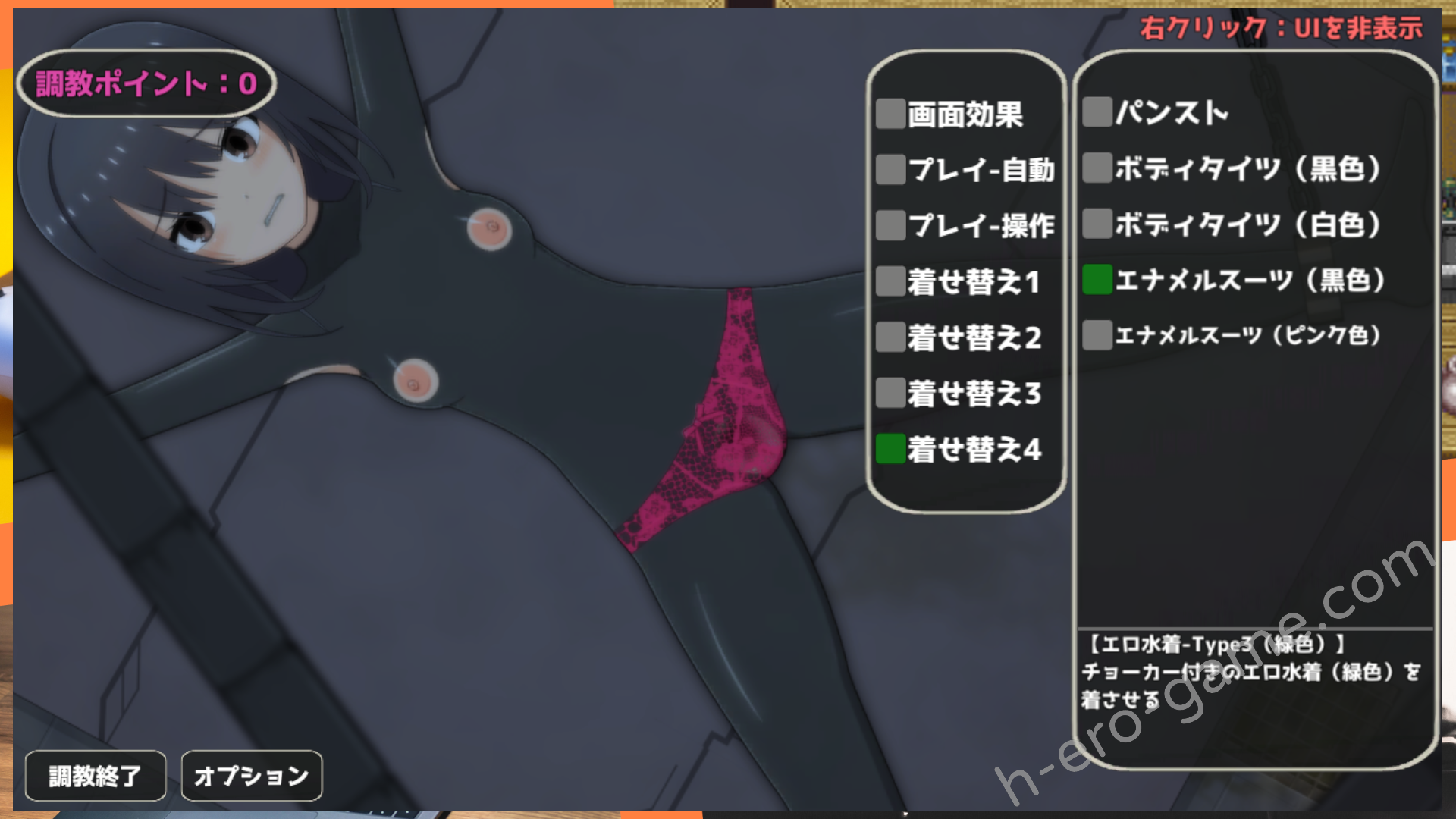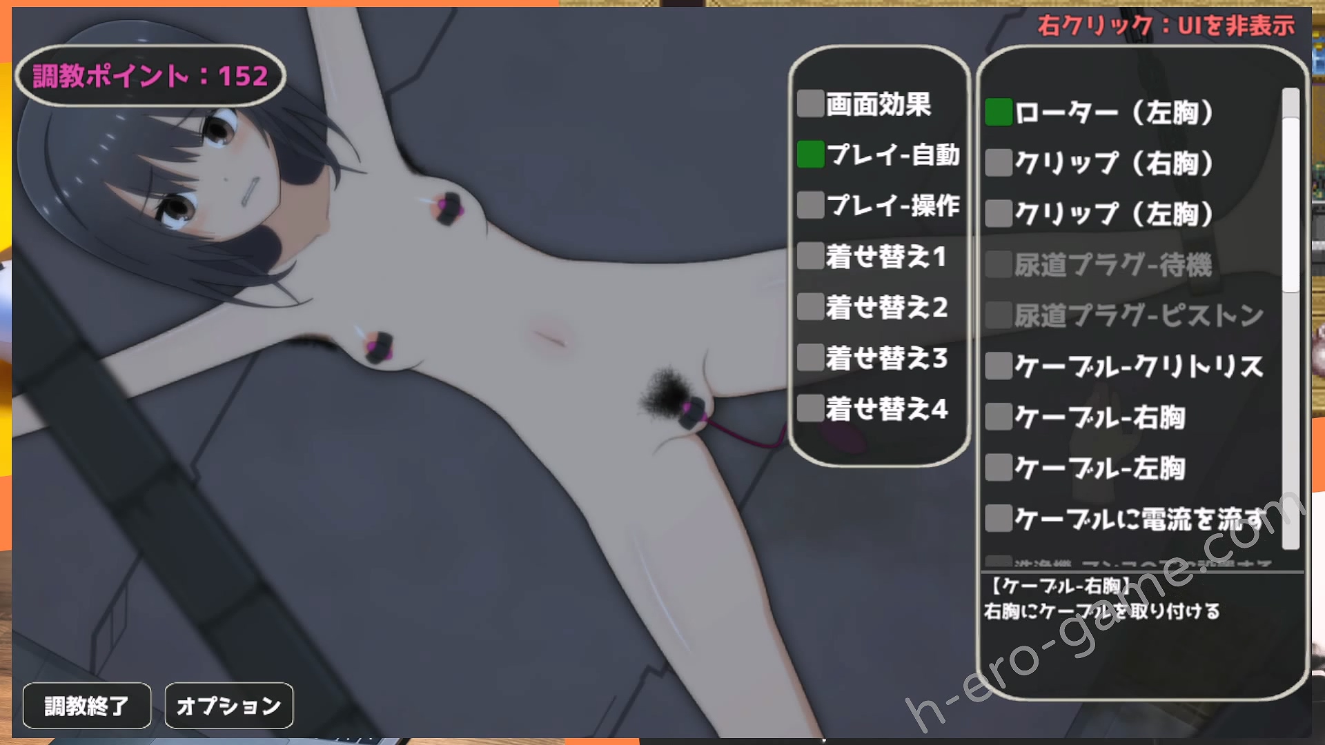 在遊戲的流程上,會根據調教點數的多寡,會在商店之中添加物品或是解鎖新的體位。