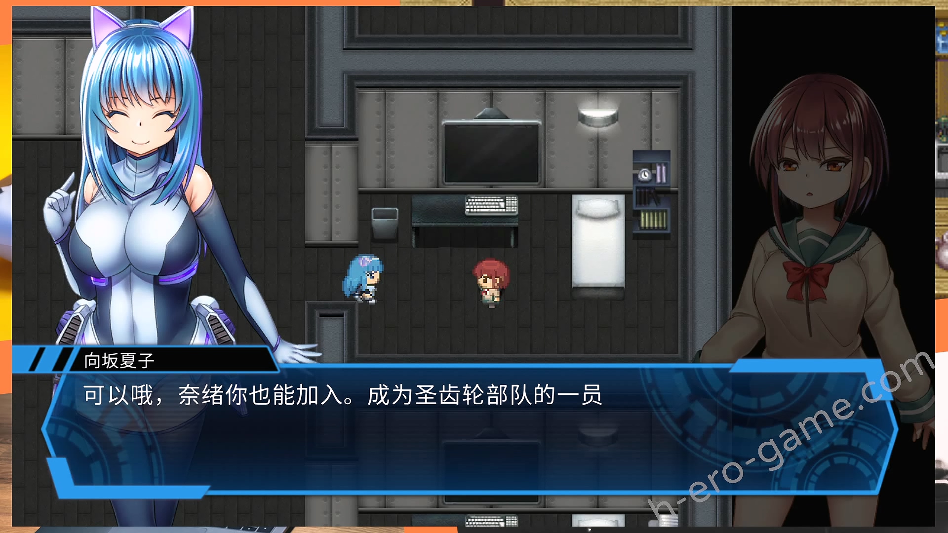 緊身衣女自稱是「聖齒輪部隊」的成員,他們的目標也是要對付這個謎之集團,於是她問了心繫好友的女主要不要加入「聖齒輪部隊」……