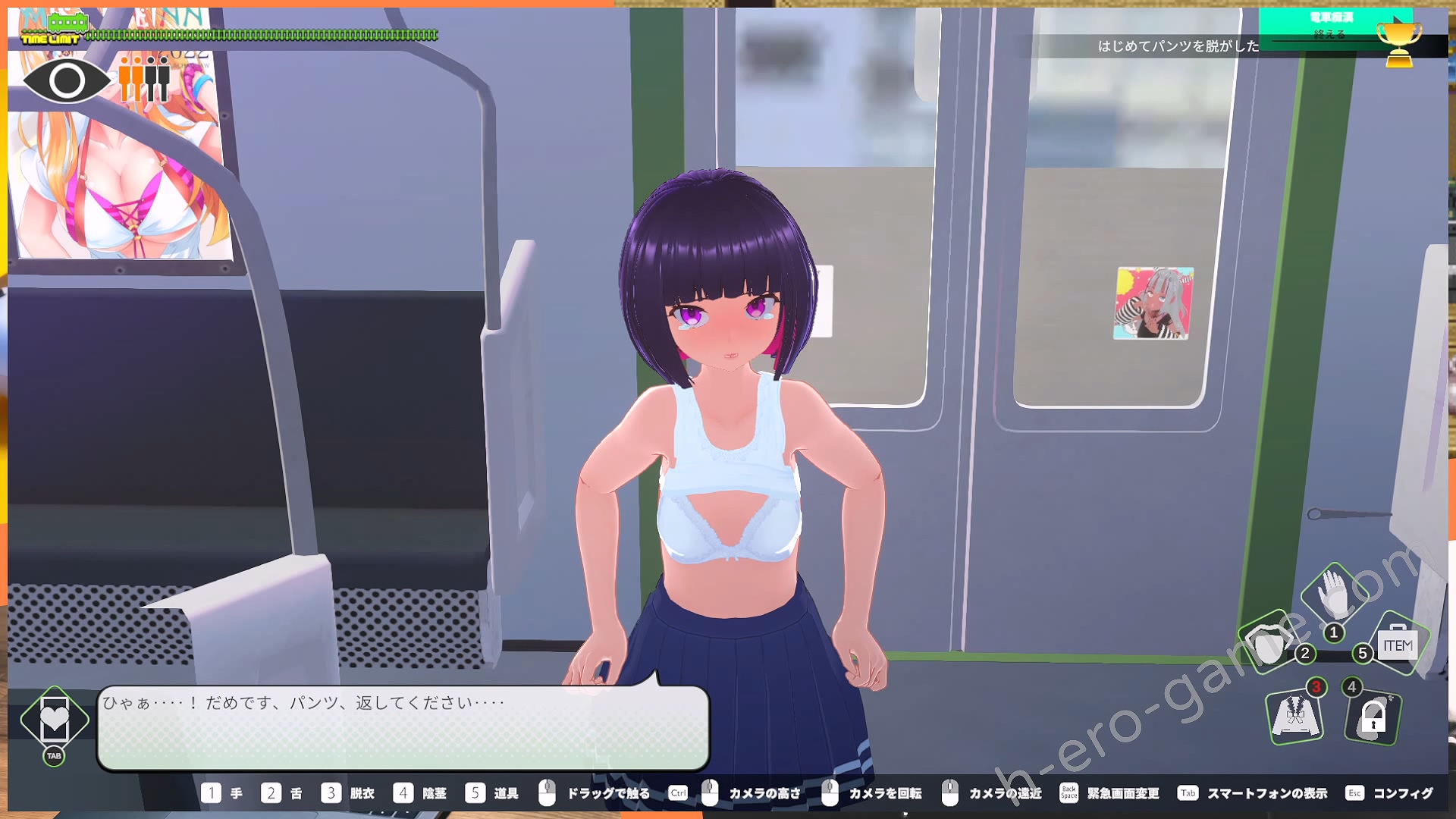 初期的目標是在電車到站前讓女主絕頂一次開啟脫衣功能,在那之前會先開啟舌頭,只是我沒有發現是是怎樣的條件解鎖舌頭,莫名其妙的就解鎖了的感覺。