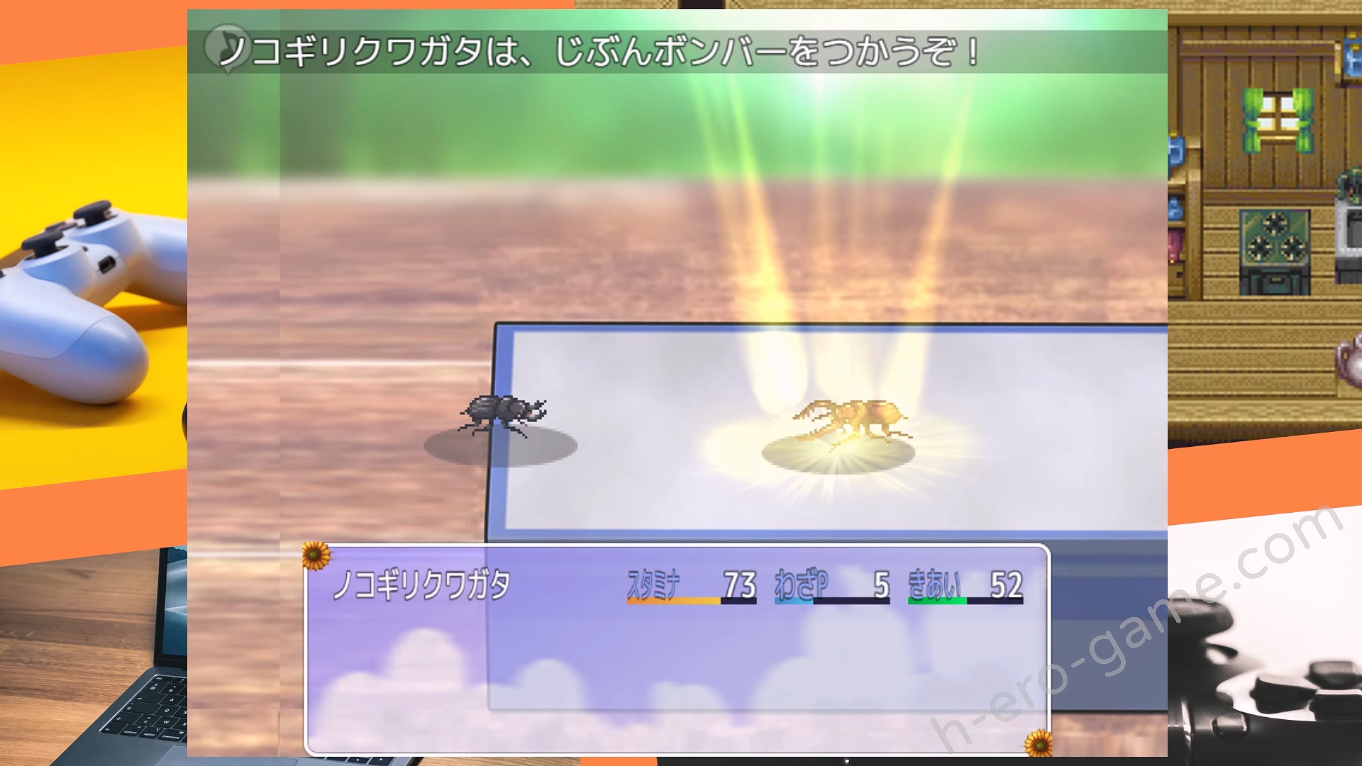 鬥蟲的部分比較需要說明,戰鬥方面是剪刀石頭布系統,分別是必殺技(ひっさつわざ)、攻擊(こうげき)跟護盾(バリア)。