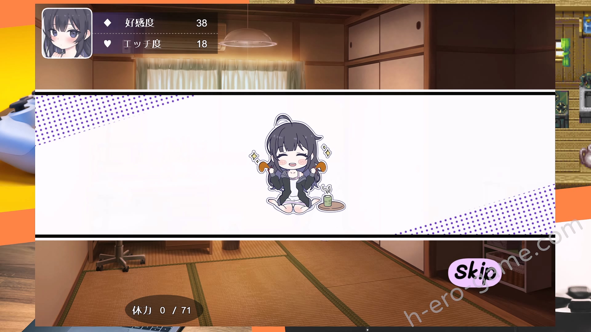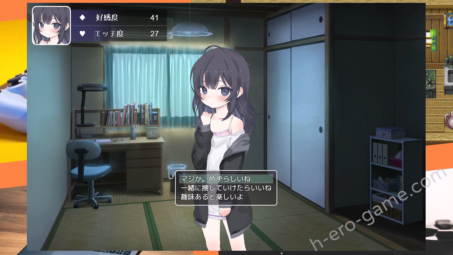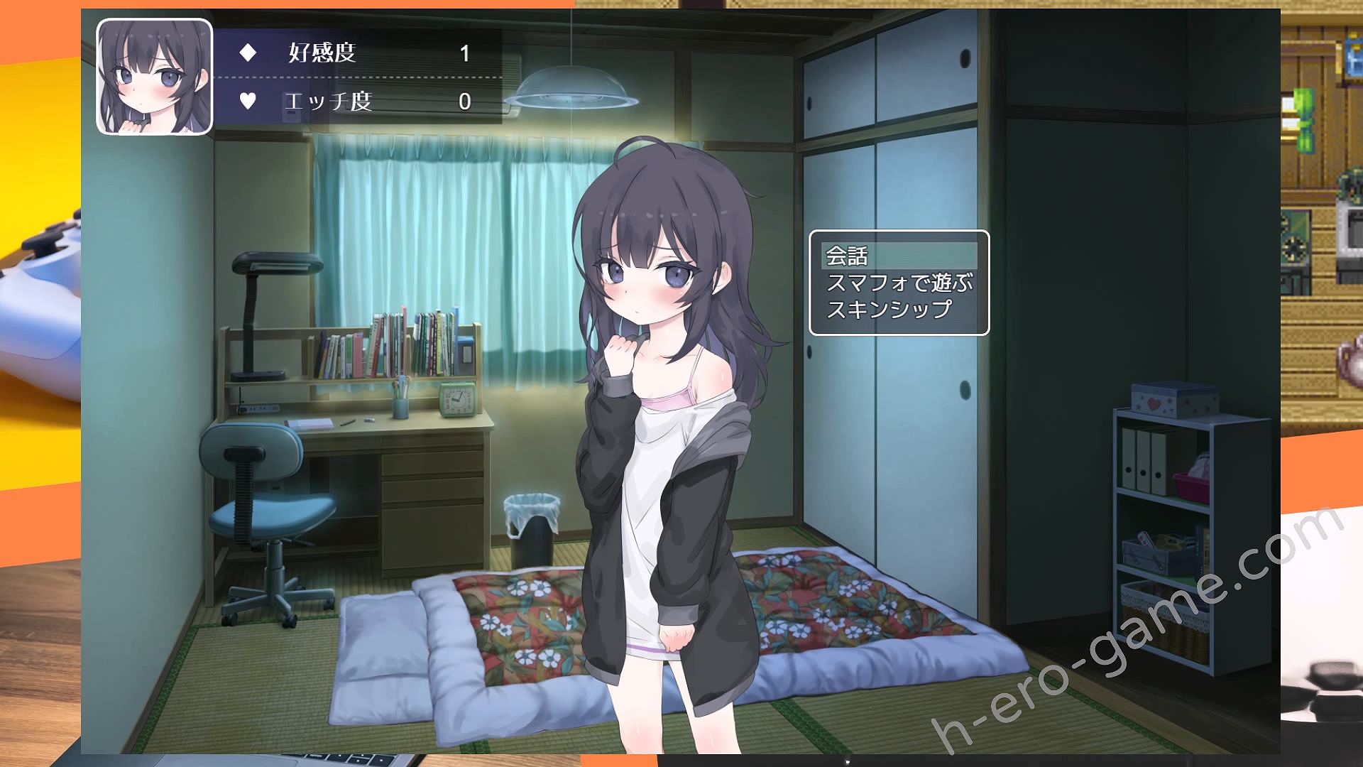 與不幸的尼特少女同居,雖然起初很不情願,但隨著對話和親密互動逐漸提升了好感度。最終兩人一起洗澡,甚至更進一步,這種逐漸的過程讓人感到愉快。