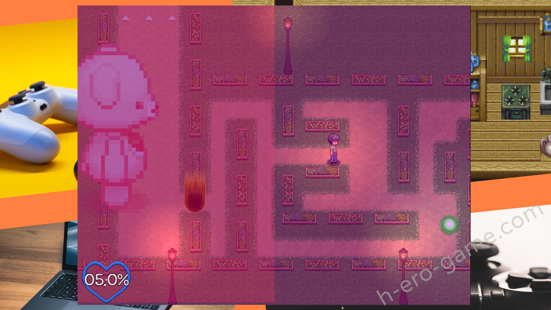 此時使用鼠標去點逃生氣泡就能累積掙扎計量條,反之點到心型氣泡會減低計量條並提升誘惑度。
