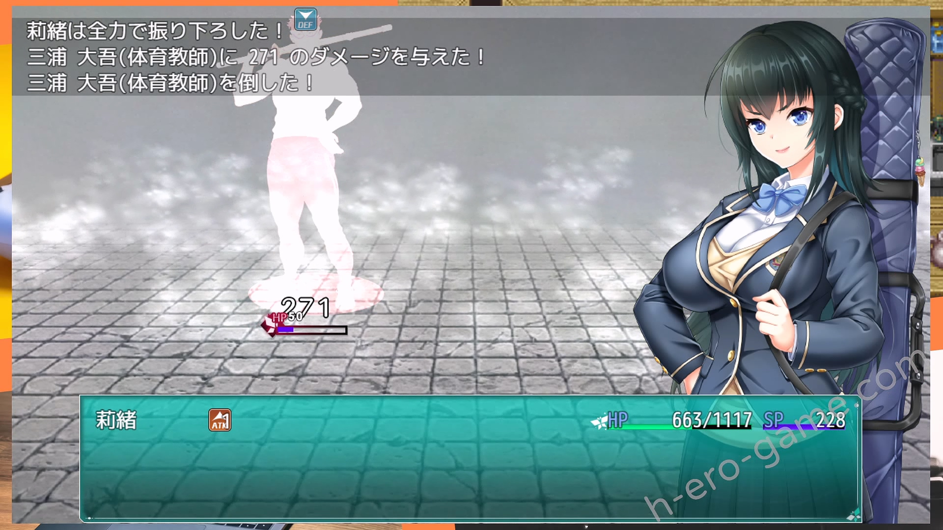 在動作階段時,如果被標示了「危險」的敵人攻擊,不但會失去生命值,連衣服都會受損。如果在全裸的狀態被攻擊的話,就會觸發H場景。