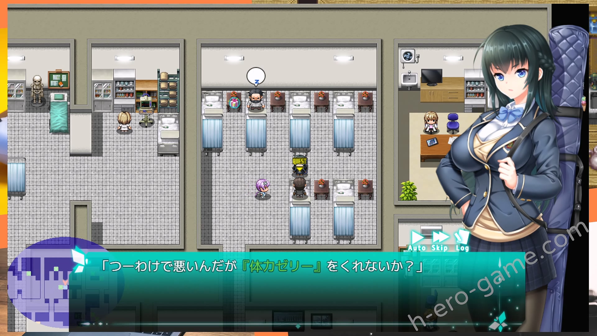 而有event標記的路人或位置,大多都是H事件。穿護士服安慰即將動手術的男性,幫情緒低落的人足交等等。而觸發H事件會增加H度(エッチ度),這個數值上生就能進行更進一步的事件,而且有部分的技能會依H度增加傷害。