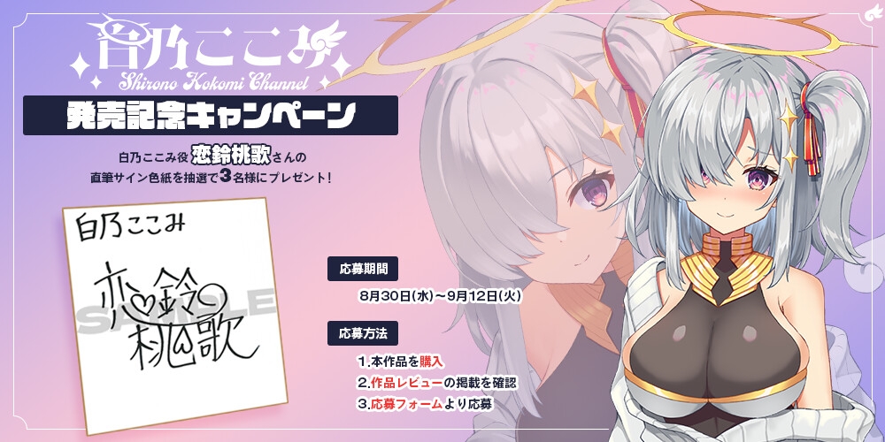 由「すにぃる」製作的「白乃ここみ/Shirono Kokomi Channel」,發售日期:2023年8月30日