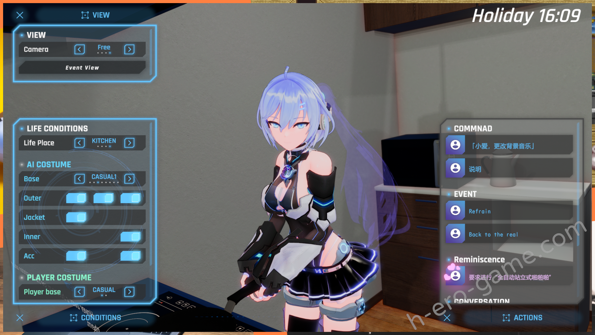 H演出是錄製的3D短片,可以在左上的視角選單中切換成自由視角,但有部分動作是固定視角的。每過一個章節該章節的劇情場景回想就會在畫廊中開放。