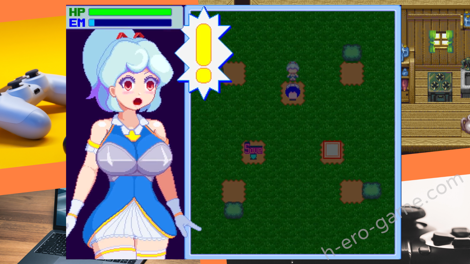 色情演出是點繪動圖,分為地圖人物點繪與CG特寫點繪。題材上除了敗北H外,城鎮的NPC幾乎全部都可以做愛。女NPC會以少年型態上,男NPC則是魔法少女型態。魔法少女型態還有孕肚狀態對應全部的H事件。
