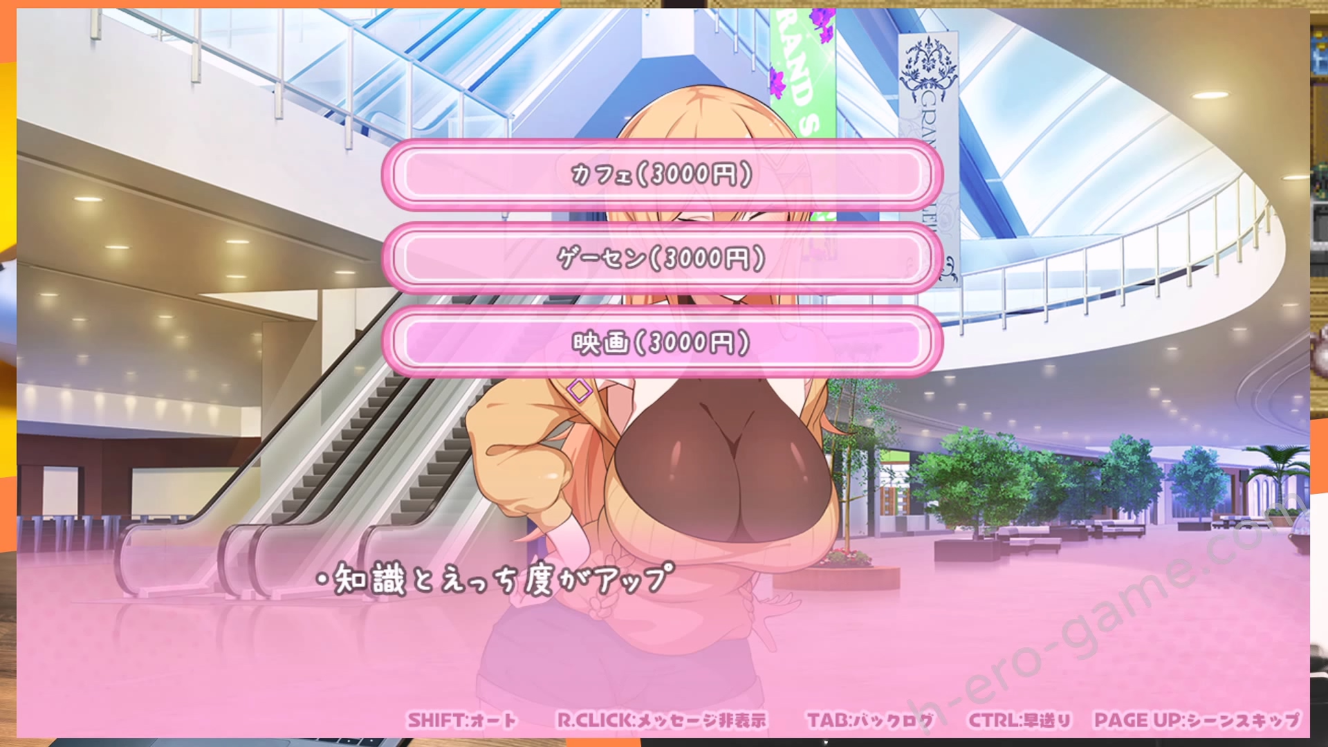 三種行動各自會提高學習、愛情、H度其中一種,但同時也會下降對應的屬性,像是讀書會提升學習降低H度。