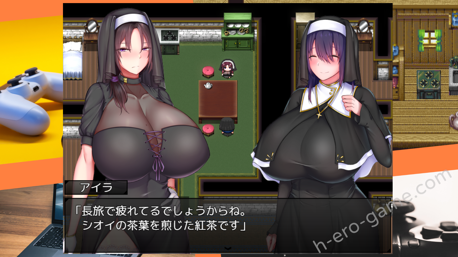 但是……在擁有著熱鬧氣氛,人們來來往往的村莊裡。似乎有很多男人因為兩名修女豐滿的身體而讓情緒失控。