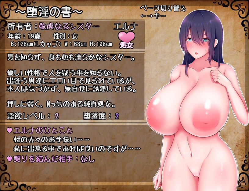 由「はちからビスケット」製作的「聖女エルナと堕淫の書 〜爆乳シスターのHなお務め〜」,發售日期:2023年10月22日