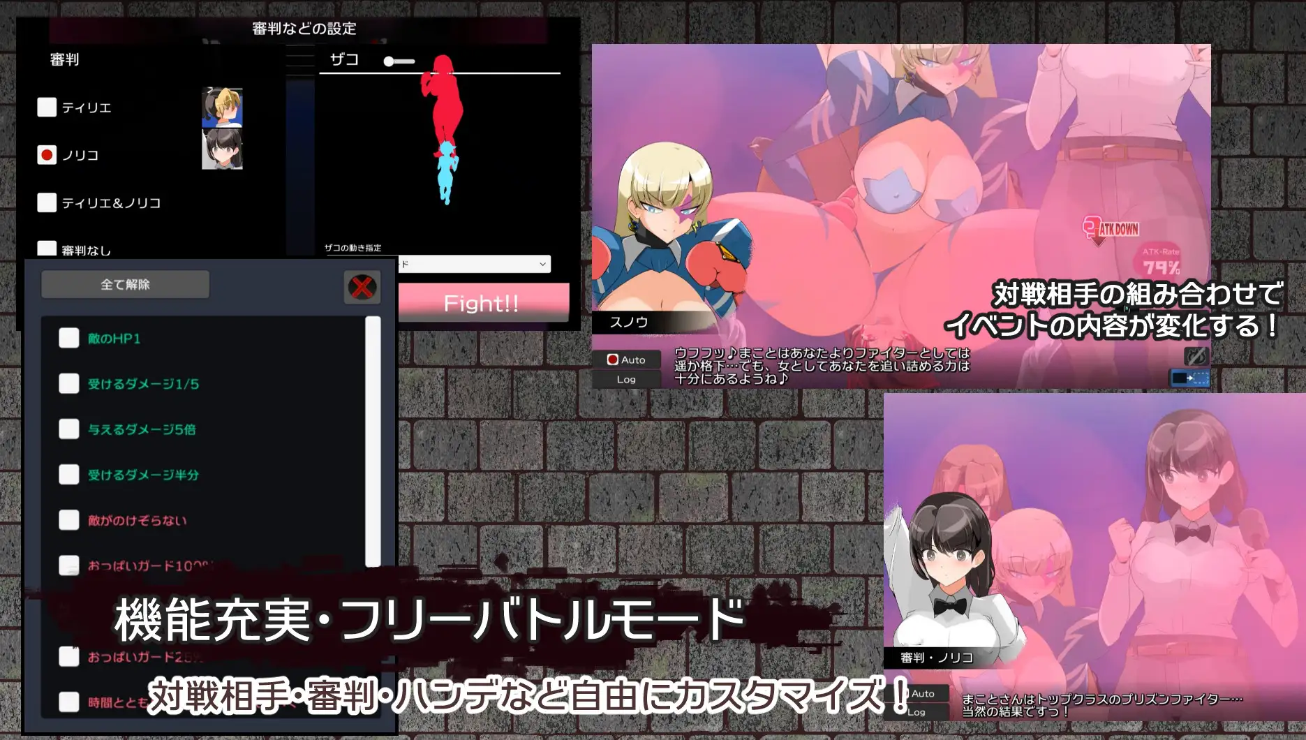 除了在戰鬥中的色誘之外還有敗北H,另外場邊的裁判也有H事件。