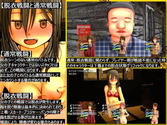遊戲部分的話,這款是以對話進行戰鬥的回合制RPG,風格上是用像「感情的對話」、「理性的論述」等技巧來說服對方,大致上是分成對女角們的脫衣戰鬥(其實男主也有脫衣戰鬥)跟一般戰鬥。雖然看起來像是比較少見的類型,狀態欄上寫的數值也不是力量、體質這些,不過其實是因應情境而做了不同的敘述,習慣回合戰鬥RPG的話會發現是差不多的系統。