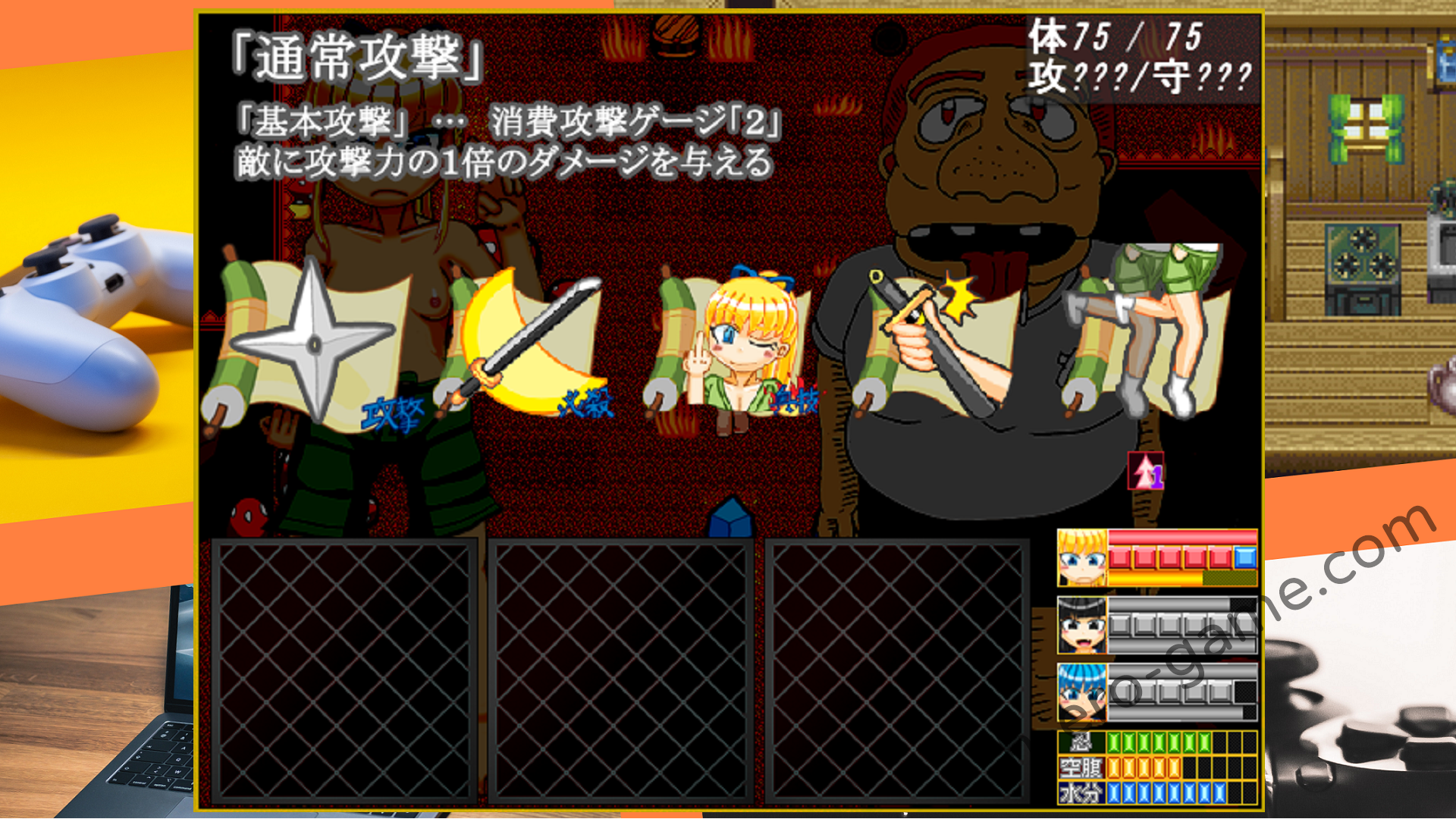 黑骷髏代表攻擊,翻出的黑骷髏越多敵人的攻擊會越強力,若主戰者生命值被敵人打入歸零就會觸發強姦CG,遊戲色情看點之一,CG動作都是隨機組合的。