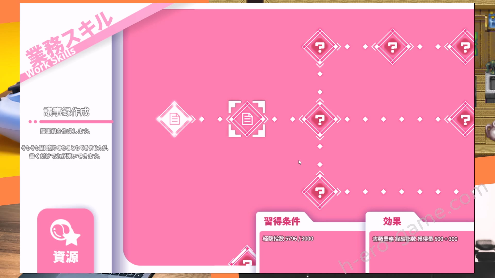 度過周末之後回到公司,可以與公司的前輩學習技能,使用目前累積的經驗值與魔力來學習效率更高的工作。
