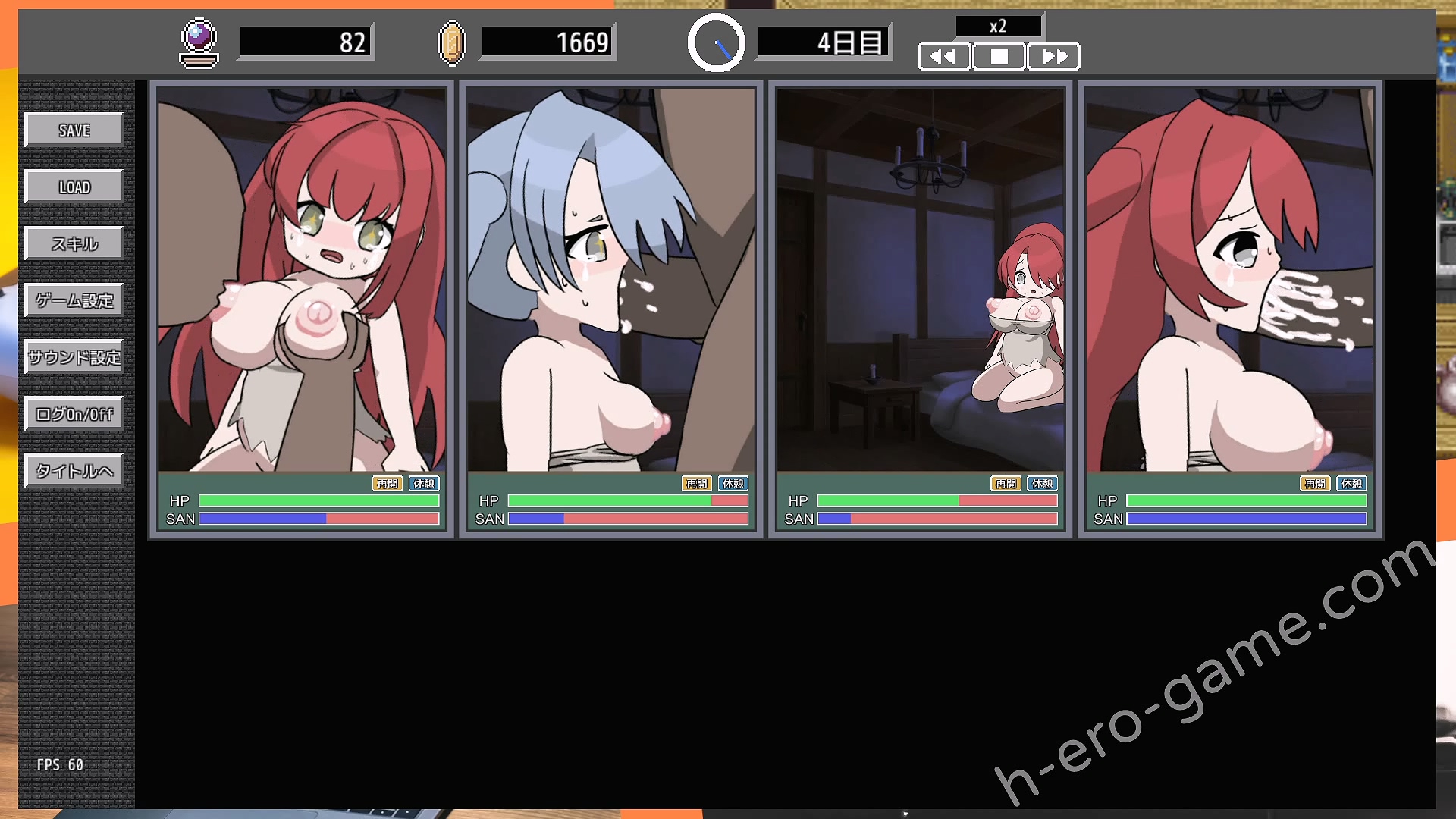 遊戲中的奴隸每次接客會被玩家侵犯都會消耗HP與SAN值,HP可以透過休息恢復,但SAN值就要等到後期開啟技能才能恢復。所以前期壞掉的奴隸就等於是沒用了,可以直接賣掉。