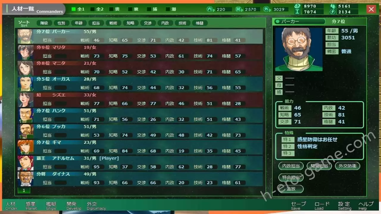 在酒吧中的人材要依他的愛好送禮物才能登用,如果特命之中有人有「個性分析」特技的話,會直接提示對方喜歡的禮物,記得在取引所購買一些便宜的書、畫、女性來滿足人才的要求。