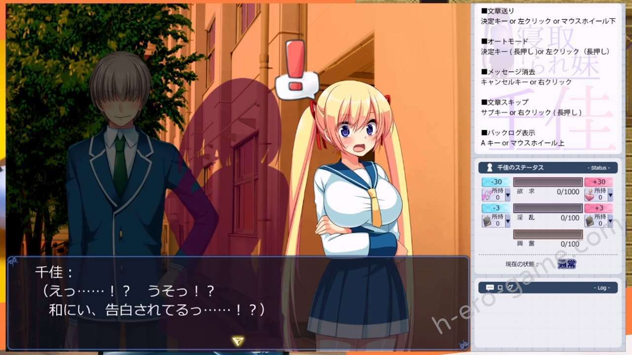 跟妹妹對話會有三擇的選擇肢,依順序是沒有影響、增加欲求跟興奮、增加欲求跟興奮還有淫亂。