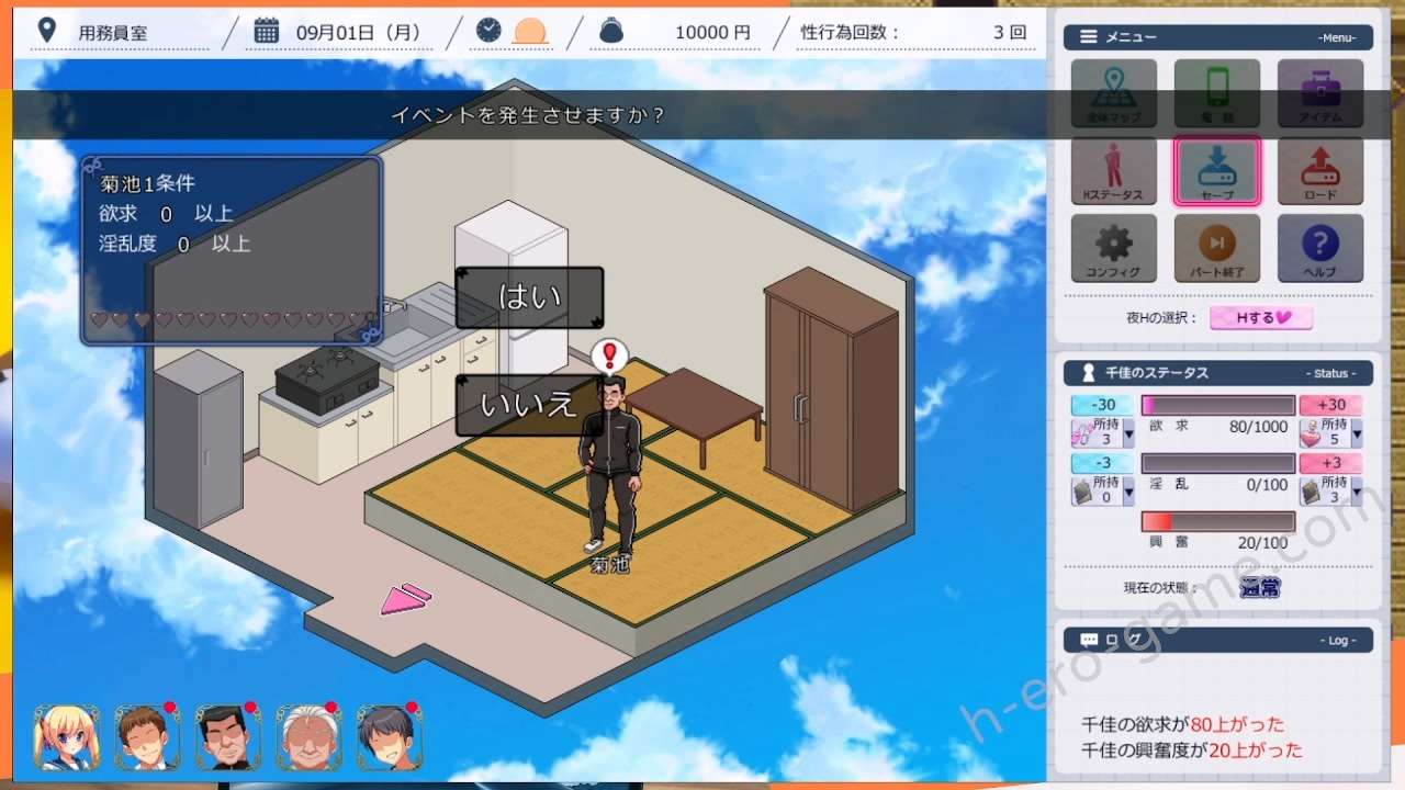 跟間男們對話會觸發事件,事件的條件是妹妹的欲求跟淫亂。但玩家可以自行決定要不要觸發事件,而且事件條件其實也不是很嚴格。