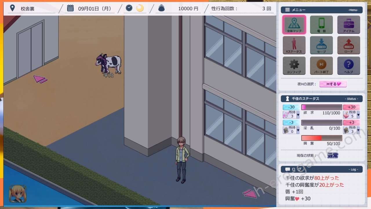當妹妹變得性欲不滿時(淫亂70以上、欲求1000),她對任何人都能夠張開雙腿,在妹妹頭像上有愛心時就表示觸發了動態豆豆圖H場景。