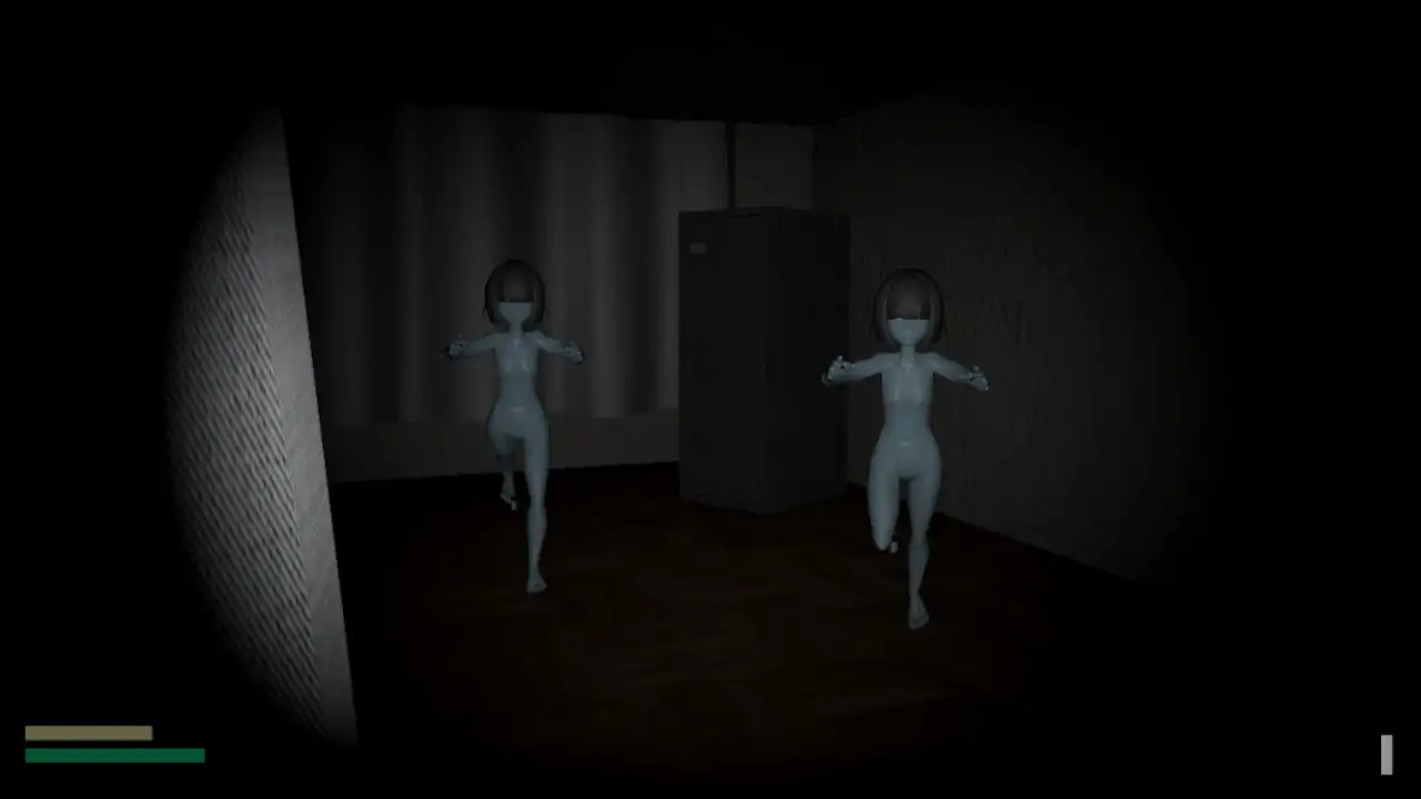雖說看起來像是玩家可以利用環境中的各種避隱處,例如說可以看到許多可以按E躲進去的儲物櫃,但是其實躲在儲物櫃裡還是會被女鬼抓出來。也不知道是bug還是我搞錯儲物櫃的用法,不過還好跑得夠快夠遠女鬼就會追丟。